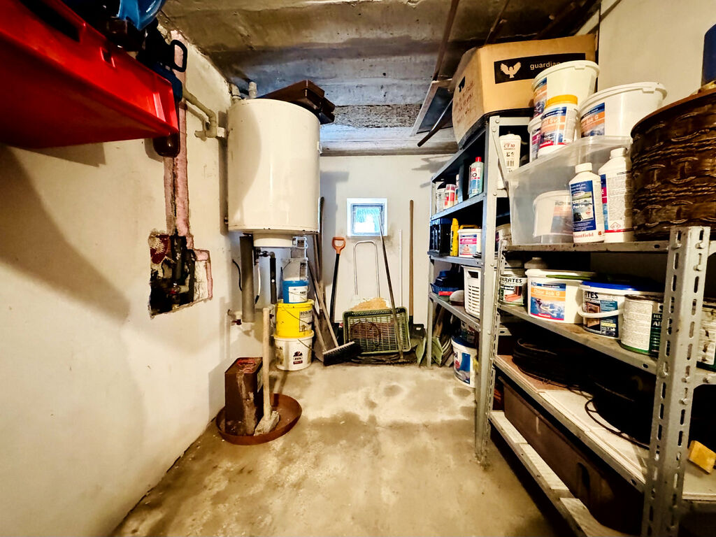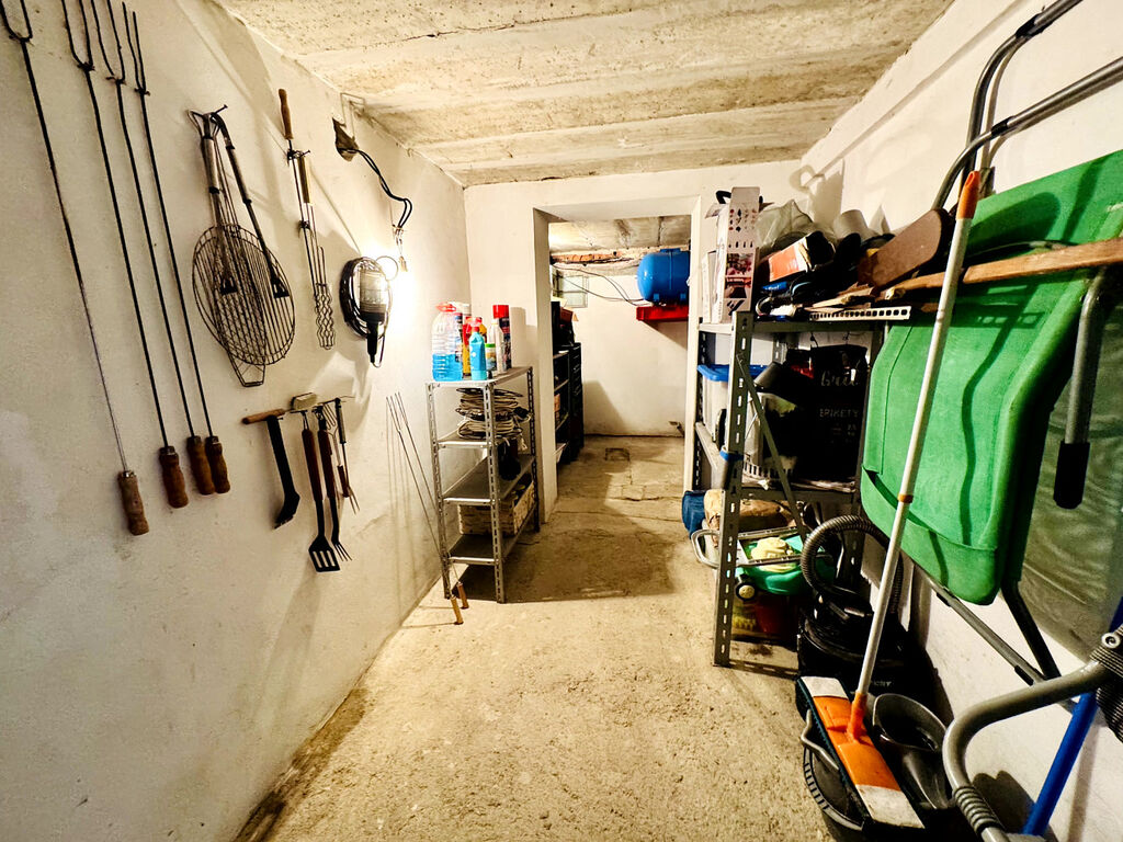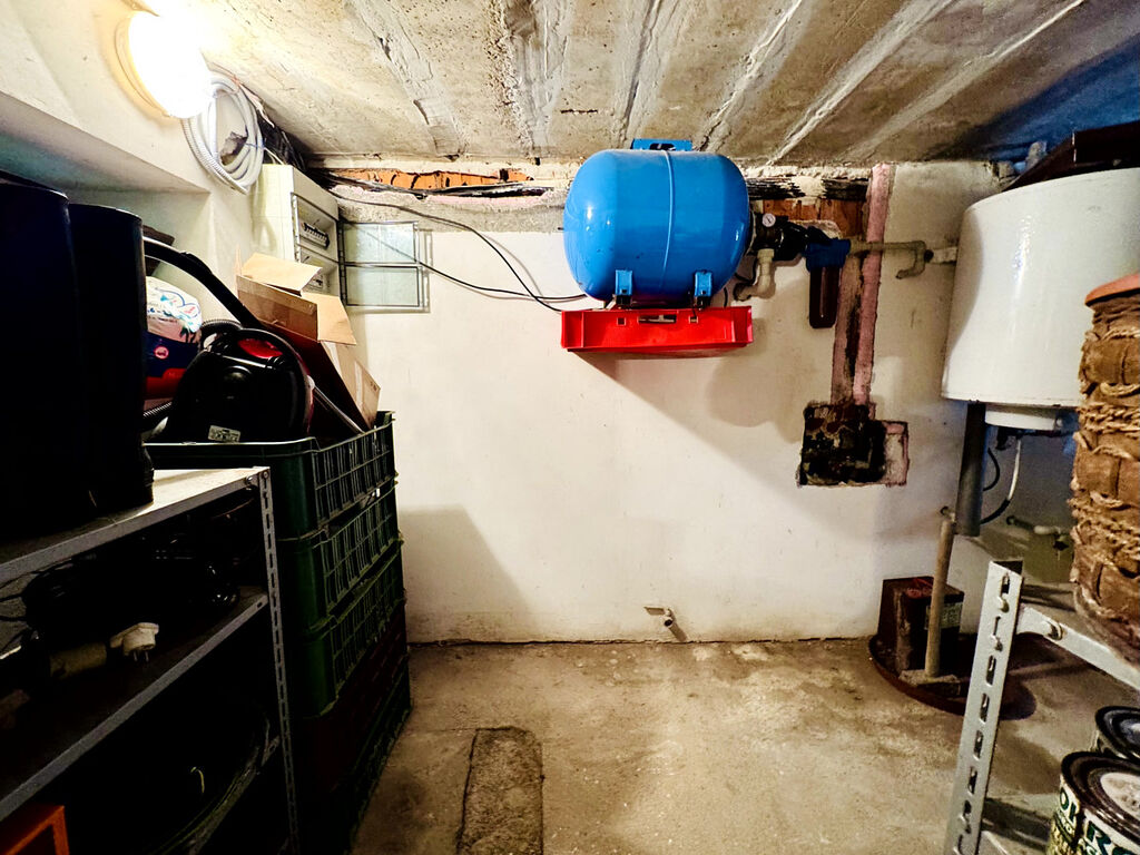 Podsklepeno: v suterénu technologie (čerpadlo, bojler na TUV) a bohaté skladovací prostory.