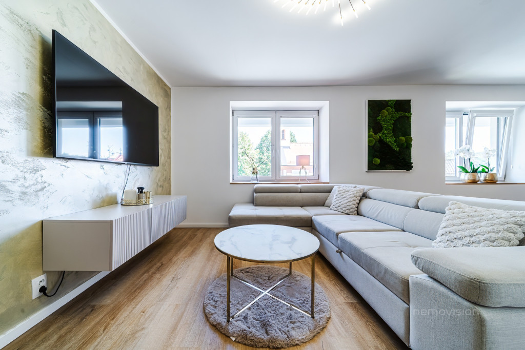 Byt je vhodný pro rodinné bydlení i pro všechny, kteří hledají kombinaci moderní architektury a klidného venkovského prostředí.