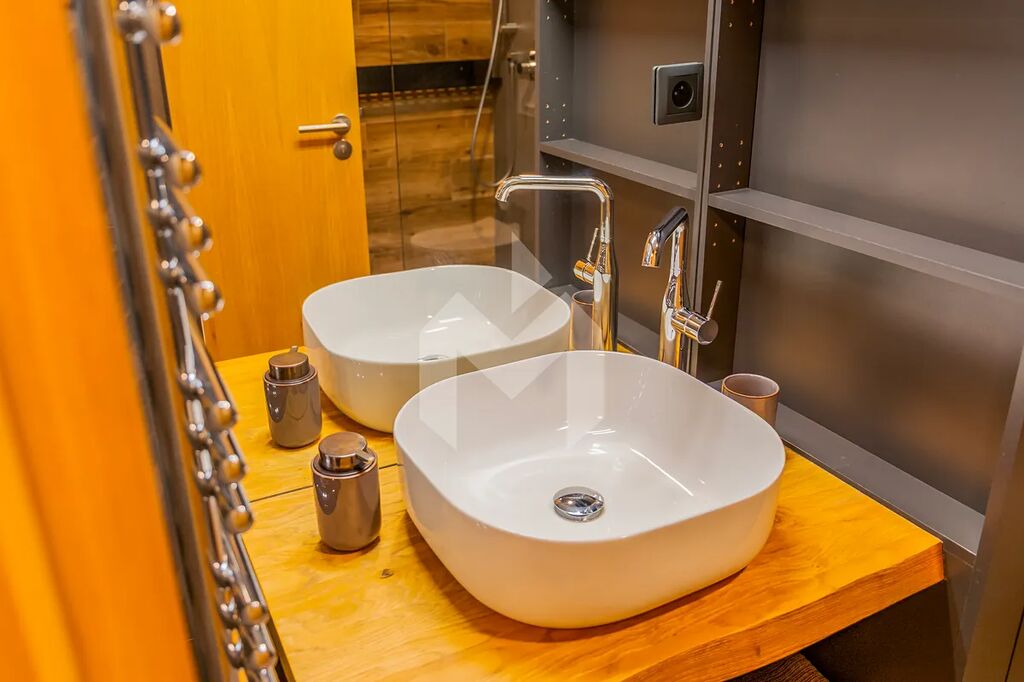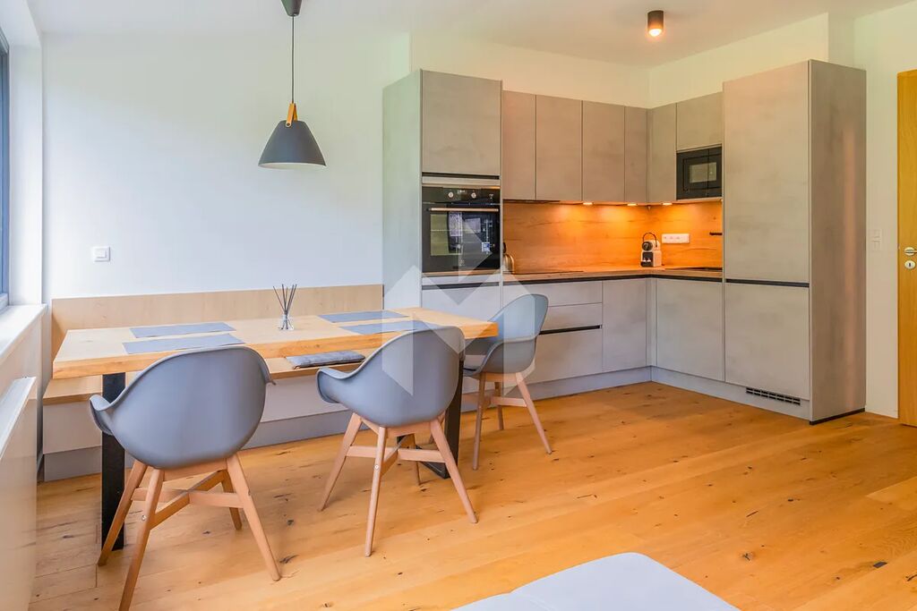 We are pleased to offer for sale a beautiful, light-filled apartment with a layout of 2 rooms + kitchenette and a floor area of 57.4 m². It is located on the top (fifth) floor of the newly developed project Ski & Bike Apartments Siréna, completed in 2023. The apartment consists of a living room with a kitchen corner, a bedroom, a bathroom, a walk-in closet, and an entrance hallway with built-in furniture. It is fully furnished and offers plenty of custom-made storage space, high-quality furniture, a fully equipped kitchen including appliances such as a dishwasher and extractor hood. The bathroom features a spacious walk-in shower, washing machine and dryer, and premium sanitary fittings from brands like Villeroy & Boch and Grohe.