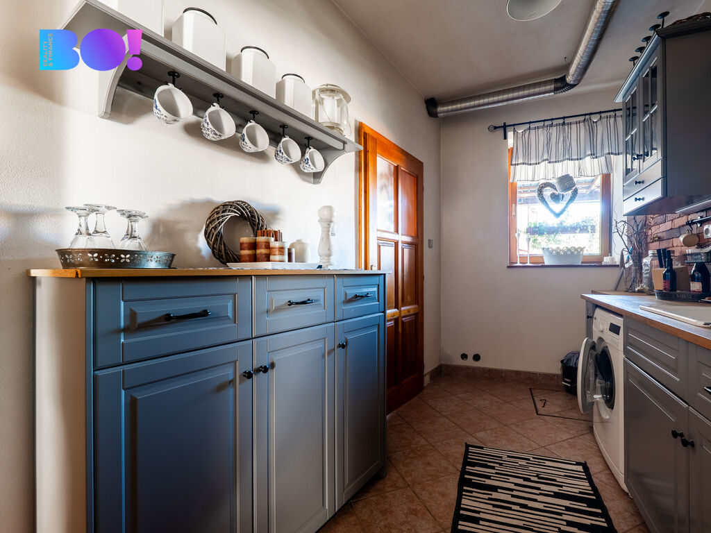 1.NP - předsíň, velká a prostorná jídelna, kuchyně s vestavěnými spotřebiči, vstup na krytou terasu.