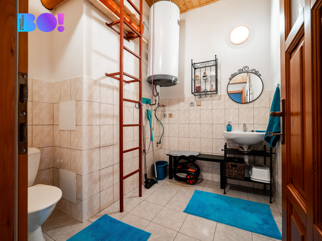 Dům je napojen na obecní vodovod a kanalizaci, vytápění elektrokotlem, ohřev vody bojlerem.