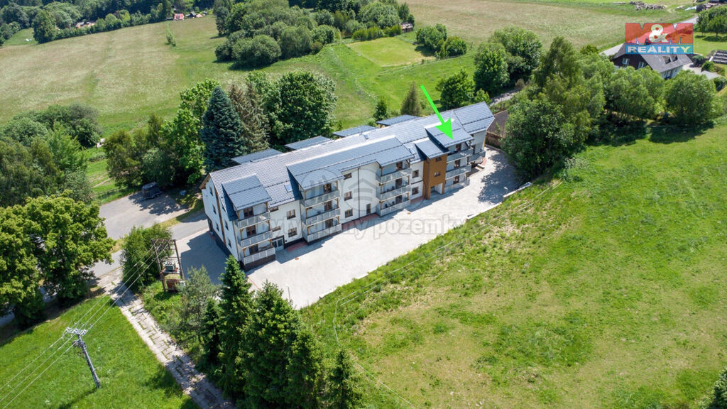 Nabízíme k prodeji útulný apartmán 1+kk (30,61m2) s terasou o velikosti 9,74 m2, který se nachází v novostavbě bytového domu. Apartmánový dům leží v klidné části Vrbno pod Pradědem. Byt najdete v posledním nadzemním podlaží a je ideální pro lidi hledající klidné bydlení v příjemném prostředí, nebo k rekreaci, či chtějí nemovitost využít ke krátkodobým pronájmům. Byt je plně vybavený a připravený k okamžitému nastěhování. Kuchyňská linka má vestavěnou myčku, ledničku, mikrovlnnou troubu, indukční varnou desku a digestoř. Byt má podlahové vytápění a má k užívání sklepní kóji a parkovací stání na parkovišti přímo u domu. Lokalita známá svou krásnou přírodou a nabízí mnoho možností pro volnočasové aktivity. Lázně Karlova Studánka leží pouhých 10 km a parkoviště Hvězda 12 km. Pokud hledáte investiční byt, či možnost rekreace v srdci přírody, tak je tento byt ideální volbou. Pro více informací nás neváhejte kontaktovat. S financováním vám rádi pomohou naši hypoteční specialisté