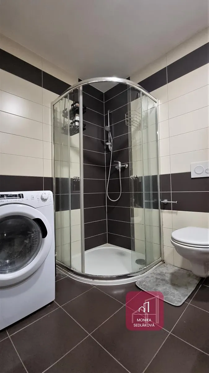 Předsíň 3,8 m, kuchyňský kout 7 m, pokoj 13 m, pokoj 12 m, koupelna se sprchovým koutem a toaletou 4,2 m, sklepní box 2 m v suterénu domu.