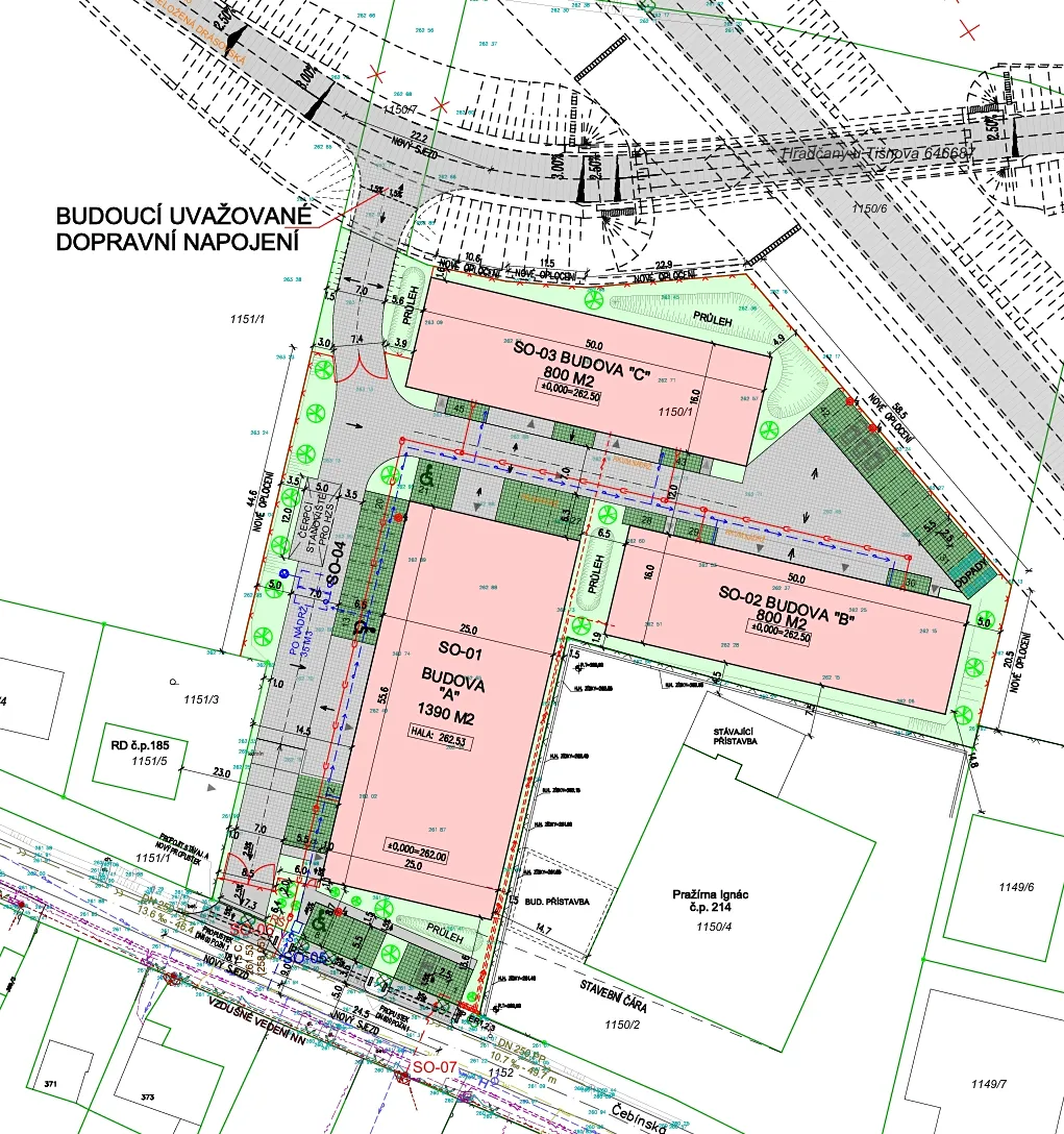 Pozemky jsou ideální pro výstavbu lehké průmyslové výroby nebo skladovacích prostor. V rámci projektu je již navržena výstavba tří hal o celkové čisté podlahové ploše 2.990 m². Územní plán umožňuje širokou škálu využití, včetně lehké výroby, skladování, administrativních staveb, parkovacích ploch a doplňkové zeleně.