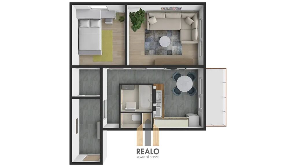 V bytě je v tuto chvíli uzavřena nájemní smlouva do května 2026, možnost ponechání nájemníků.