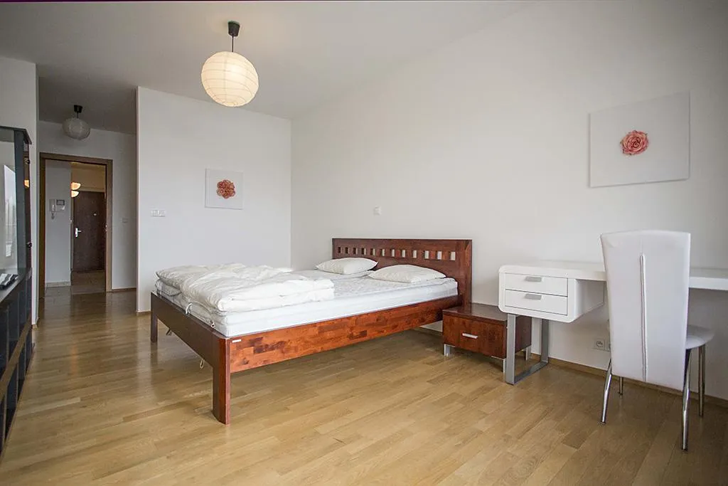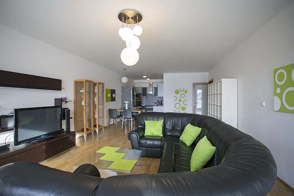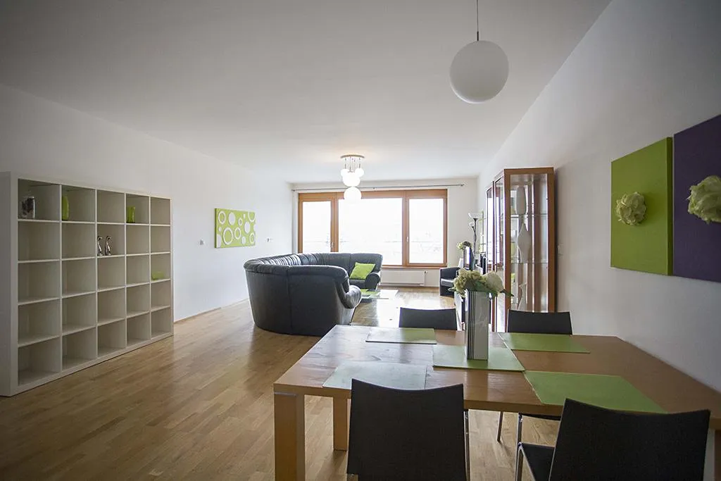 S potěšením Vám nabízíme pronájem zařízeného bytu o dispozici 2+kk a velikosti 89 m2 + cca 14 m2 terasa (celkem cca 103 m2). Nachází se ve 3. patře (4. NP) projektu Rezidence Petřiny, velkorysého projektu s recepcí 24/7 na Praze 6 - Veleslavíně.