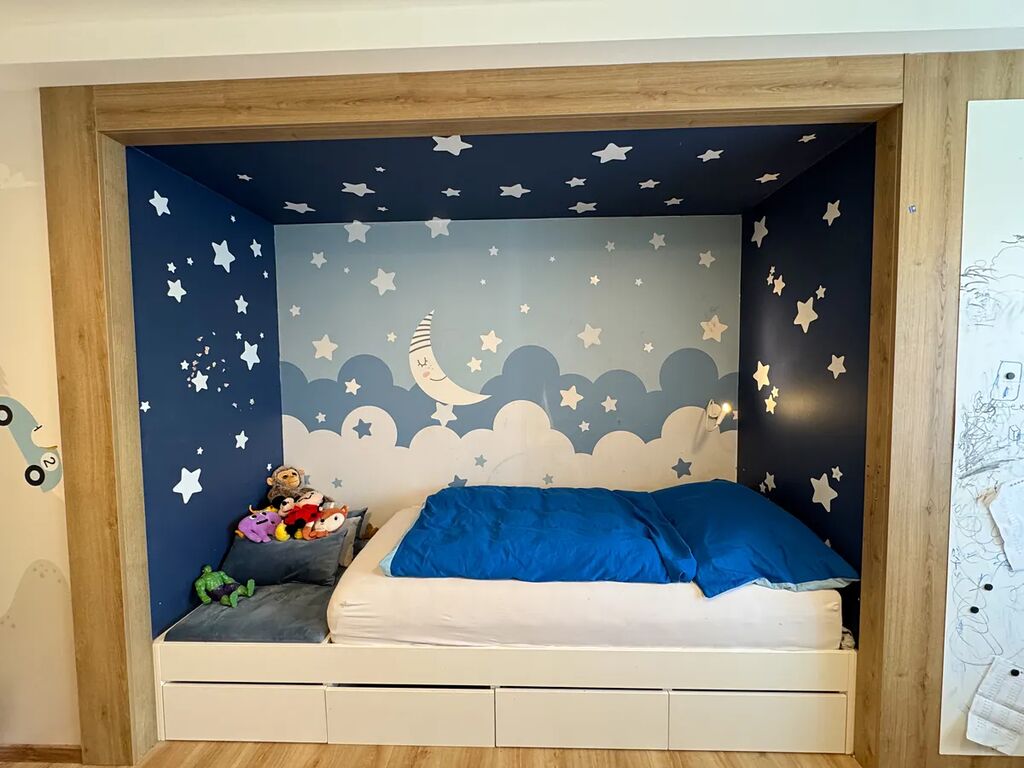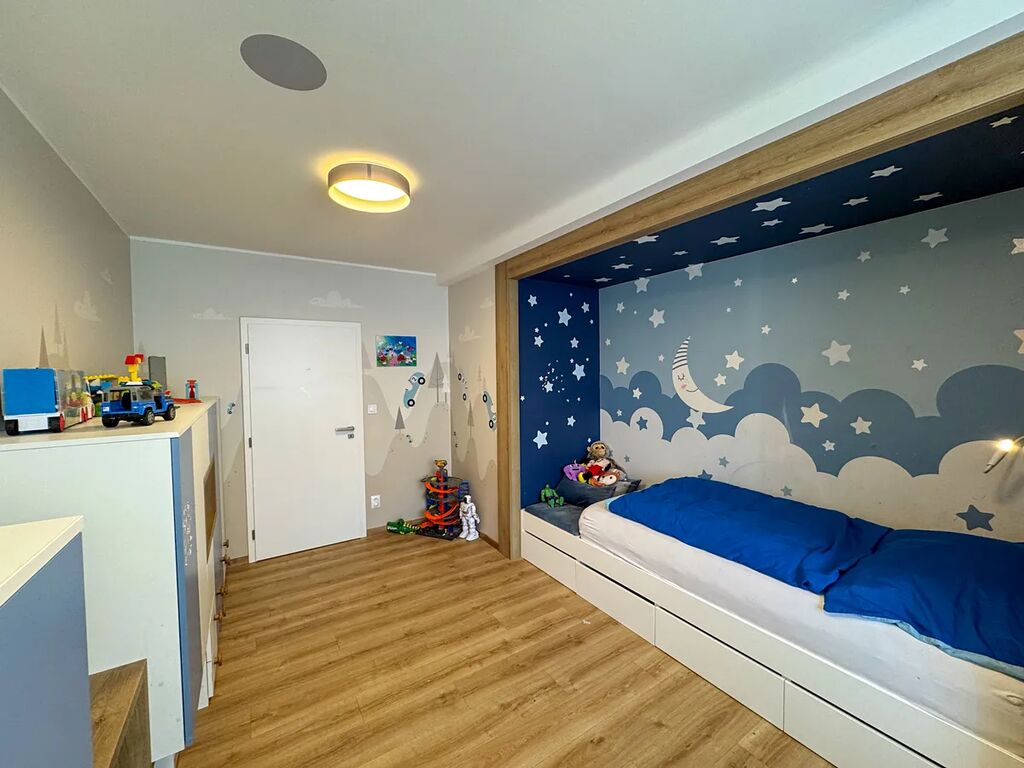 Dispozice bytu je velmi praktická a promyšlená: z předsíně se vstupuje samostatně do dětského pokoje, koupelny, na toaletu, do komory a do obývacího pokoje s kuchyňským koutem. Z obývací části je pak vstup do ložnice. Byt nabízí dostatek světla, úložných prostor a pohodlí pro rodinu, pár i jednotlivce.