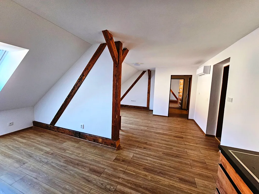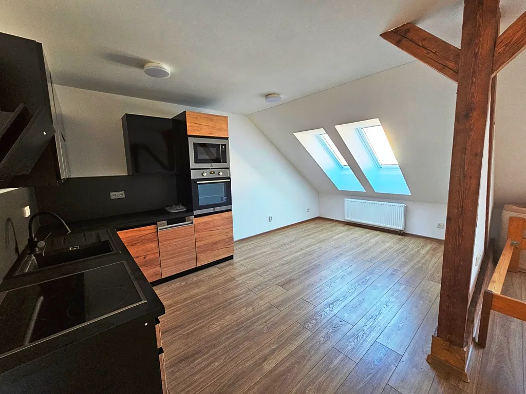 Pronájem nového podkrovního bytu v Milevsku. Byt je umístěn ve 2. patře a dispoziční řešení bytu je 2+1 o celkové výměře cca 65 m2. V bytě zůstává kuchyňská linka vč. spotřebičů - myčka, trouba, sklokeramická deska, mikrovlnná trouba. Koupelna je společně s toaletou a se sprchovým koutem. Vytápění ústřední, v domě je plynový kotel. Byt je vybaven klimatizací. K dispozici dle domluvy. PENB nebyl zatím dodán, proto uvádíme třídu G.