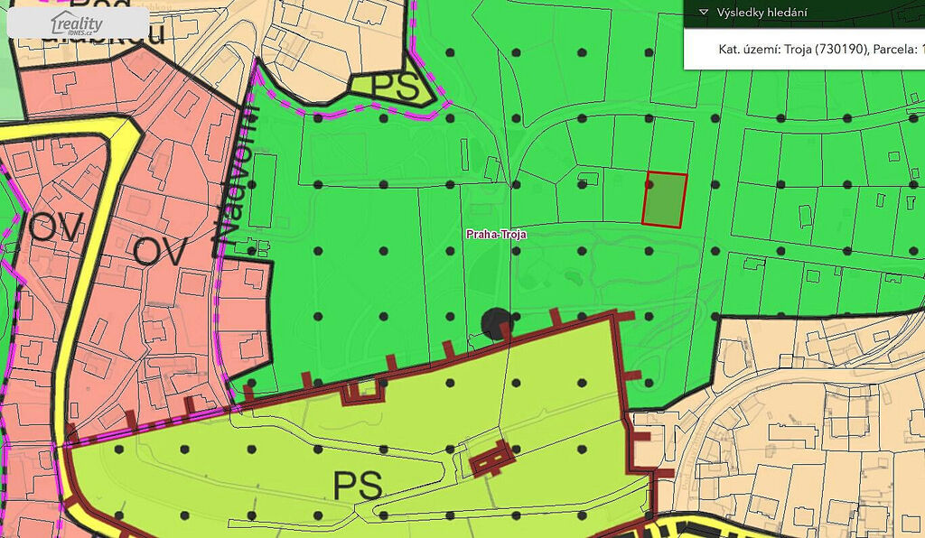 Prodáme pozemek o výměře 1474 m² nacházející se v atraktivní části Prahy 7 - Troji, v těsné blízkosti Botanické zahrady. Pozemek je svažitý, jižní oriantace. Je oplocený. Na hranici pozemku je elektřina, v ulici voda. Přístup na pozemek je po nezpevněné cestě. Pozemek je dle územního plánu vedený jako území s omezenou zastavitelností sloužící k rekreaci a oddechu, sportovní aktivitu v přírodě.