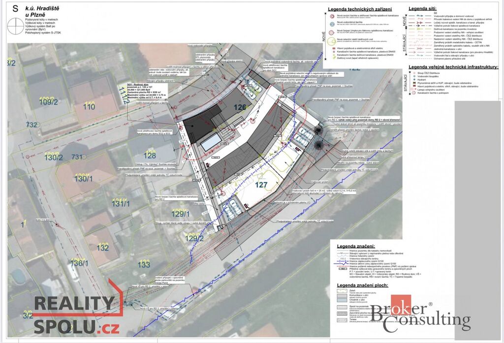 Prodej 3 stavebních pozemků se stavebním projektem – Plzeň, Hradiště (Plzeňská cesta 105/103) o celkové výměře 1 182 m²