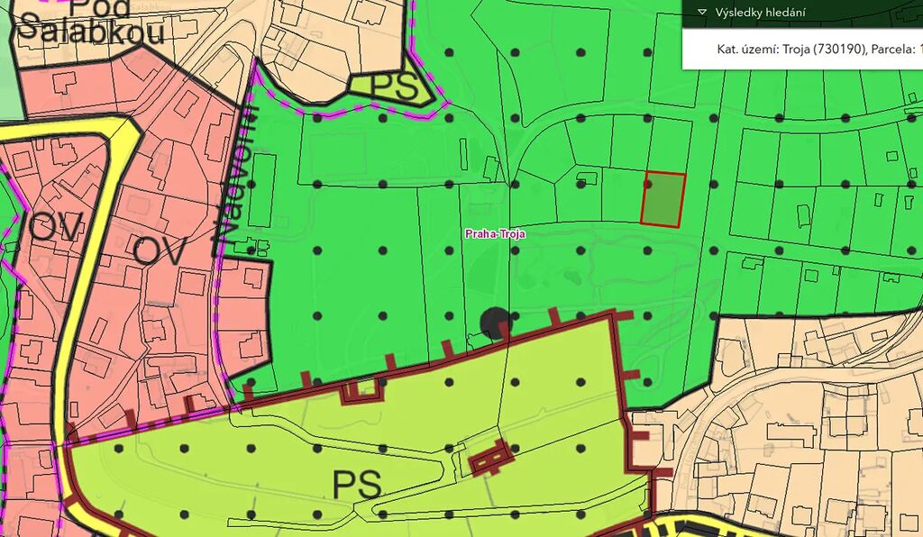 Prodáme pozemek o výměře 1474 m2 nacházející se v atraktivní části Prahy 7 - Troji, v těsné blízkosti Botanické zahrady. Pozemek je svažitý, jižní oriantace. Je oplocený. Na hranici pozemku je elektřina, v ulici voda. Přístup na pozemek je po nezpevněné cestě. Pozemek je dle územního plánu vedený jako území s omezenou zastavitelností sloužící k rekreaci a oddechu, sportovní aktivitu v přírodě.