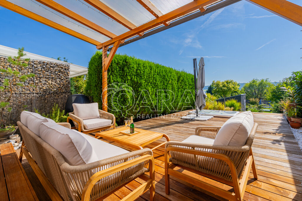 • Zahrada 162 m² se vzrostlou zelení, terasou s pergolou a vířivkou a zahradním domkem