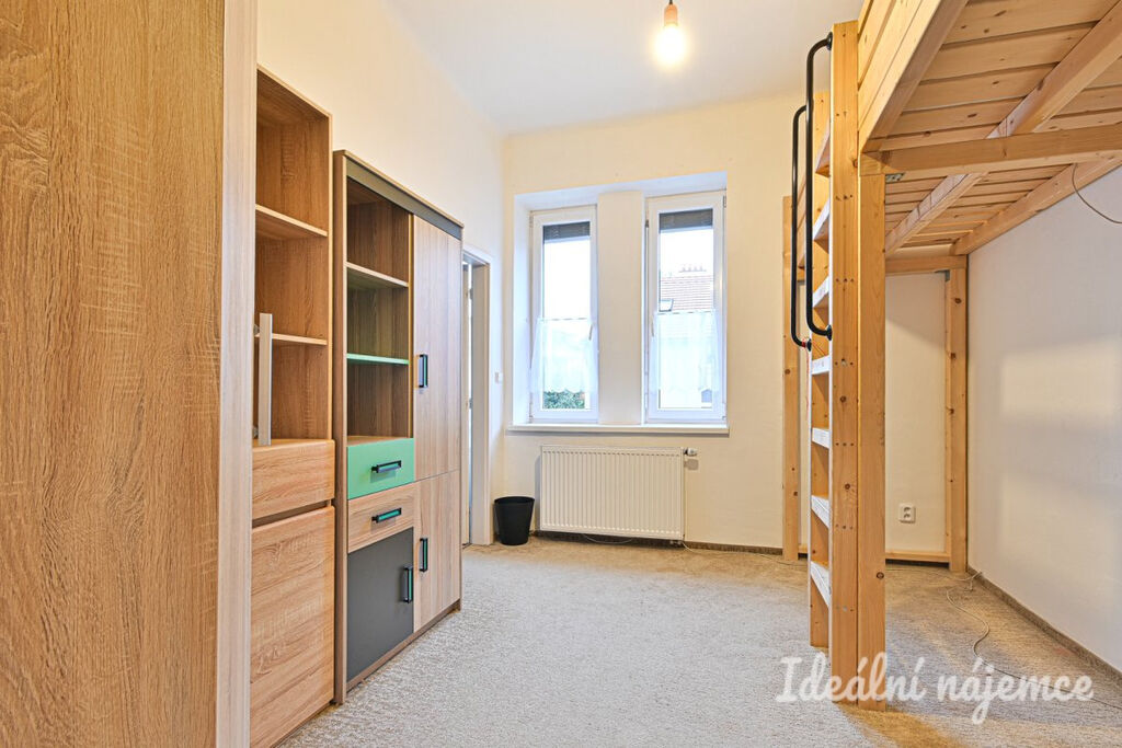 Další dva samostatné pokoje jsou zařízeny patrovou postelí a skříňkami s úložným prostorem.