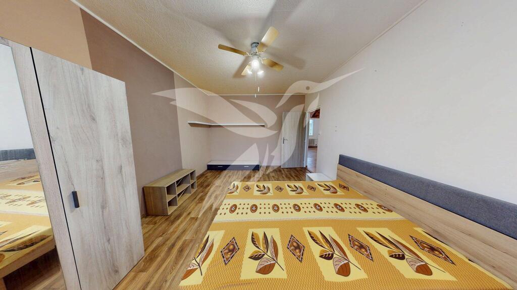 Nemovitost o velikosti 65 m2 se nachází ve 3. NP panelového domu bez výtahu a skládá se z předsíně, 3x samostatného pokoje, pokoje včetně kuchyňské linky, koupelny s toaletou a k bytu náleží i sklep situovaný v mezipatře bytového domu. Byt se pronajímá jako vybavený a jeho součásti je kuchyňská linka s kombinovaným sporákem + digestoří, kombinovaná chladnička, myčka nádobí, MW trouba. Dále se v bytě nachází skříně a komody na úložný prostor, sedačka i postel, předsíňová/obývací sestava. Vytápění a ohřev vody je zajištěn dálkovými dodávkami. Parkování je dostupné přímo u bytového domu. Předností je skvělá lokalita s občanskou vybaveností i dostupnosti autobusového či vlakového spojení - v docházkové vzdálenosti škola, školka, obchod, pošta, dětské hřiště.
