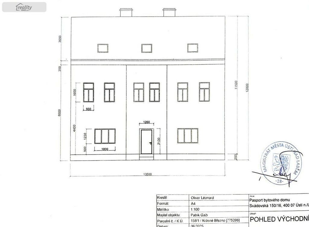 Zatím je hotová nová střecha s krovy (krytina plech), stropy, podlahy, trámy, rozvod elektřiny, vody, nové okna. Součástí je pasport bytového domu.