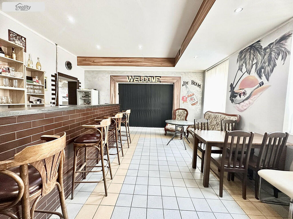 Dispoziční řešení: v 1. NP vstupní chodba, 1 část restaurace cca 10 míst a bar, 2 část restaurace cca 36 míst, salonek cca 12 míst, pánské toalety, dámské toalety, zadní vstup do prostor pro zaměstnance, ( zázemí ) dle stanov hygieny, kde je sprcha, umyvadlo a toalety pro personál, z těchto prostor určených pro personál je vstup do kuchyně, která má potřebné náležitosti schválené dle stanov Hygieny Teplice. Dále v zadní části objektu je kuchyňka sloužící pro ubytované, vchod na zadní dvůr a schodiště do sklepa a rovněž , v jiné části chodby schodiště do 2 NP a zázemí pro uklízečku, kde je také umístěna pračka.