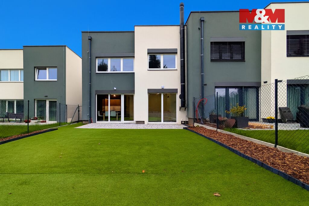 Nabízíme k pronájmu moderní novostavbu rodinného domu v klidné části obce Újezd Průhonic. Tento dvoupodlažní řadový dům nabízí komfortní bydlení na užitné ploše 146 m². Dispozice domu 4+kk zahrnuje prostorný obývací pokoj s krbovými kamny a přímým vstupem na terasu a do zahrady o velikosti 111 m², plně vybavenou moderní kuchyňskou linku, tři ložnice a úložné prostory, dvě koupelny a dvě toalety. K dispozici je v prvním patře také praktická skladová místnost, kterou lze využít jako šatnu. Dům je vybaven elektrickými venkovními žaluziemi na všech oknech a nabízí garáž pro jedno auto a další parkovací stání před garáží. Celková plocha pozemku činí 303 m². Ideální volba pro ty, kteří hledají klidné a moderní bydlení.