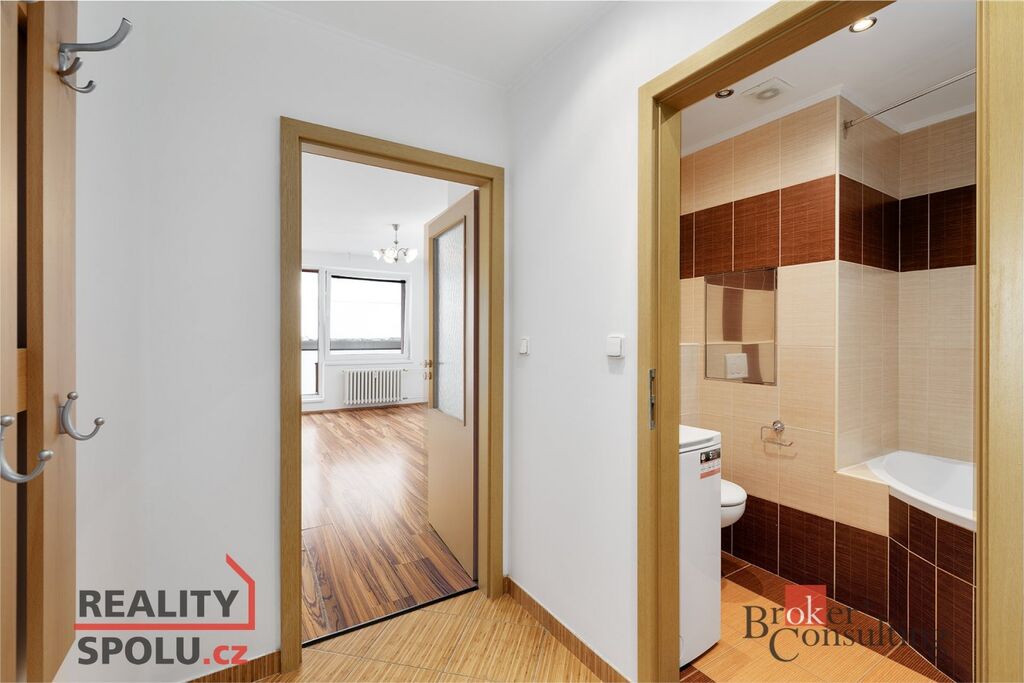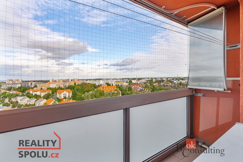 Dispozice zahrnuje světlý pokoj s menším kuchyňským koutem, moderní koupelnu s vanou, vstupní chodbu a lodžii s možností uzavření okenním systémem, který nabízí další praktický prostor například pro posezení nebo uskladnění. Díky příznivé orientaci je byt krásně prosvětlený po celý den. Nachází se ve vysokém patře s příjemným výhledem a dostatkem soukromí. Je ideální jako startovací bydlení pro jednotlivce nebo pár, případně jako investice k pronájmu. Náklady na energie a bydlení jsou cca 3000,-/m.