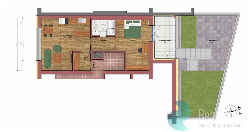 navazuje na zimní zahradu o velikosti 9,7 m², která je ideálním místem pro odpočinek a