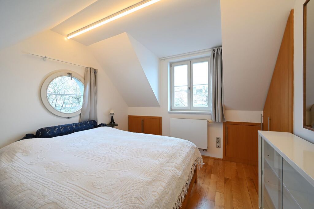 Vyjímečně situovaný, atypický nově vymalovaný, plně zařízený podkrovní byt 2+kk 66 m2 k dlouhodobému pronájmu.
