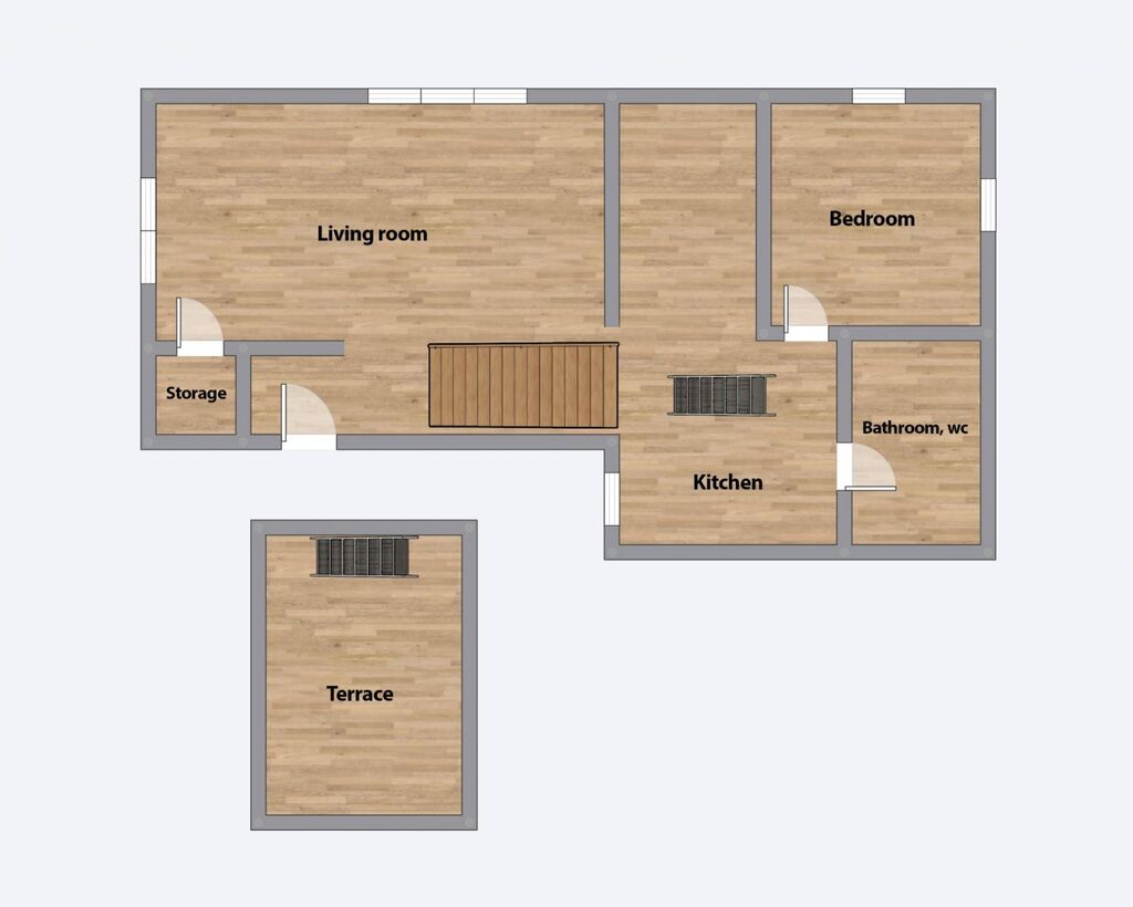 Jedna neprůchozí ložnice + obývací pokoj s plně vybavenou kuchyní všemi spotřebiči - sporákem, troubou, digestoří, myčkou., pračkou. Koupelna s vanou a toaletou.