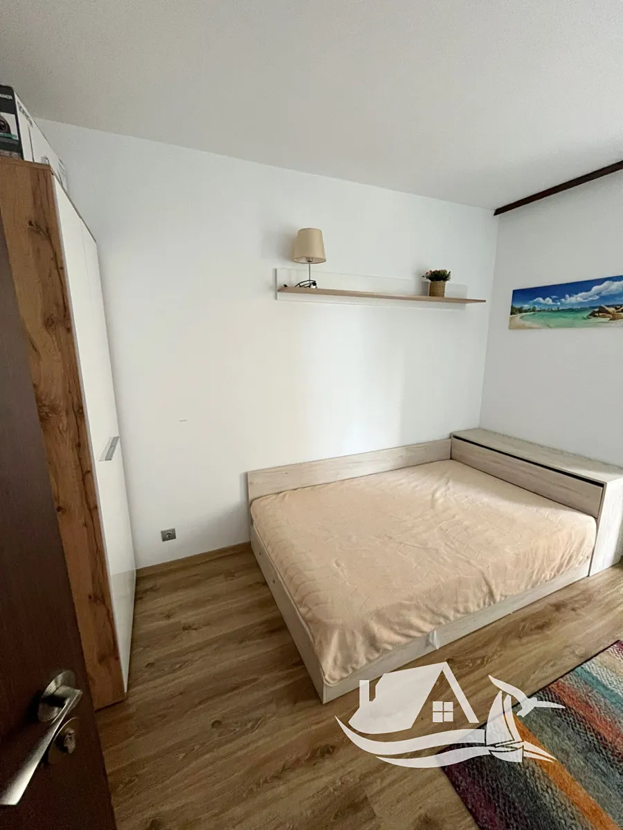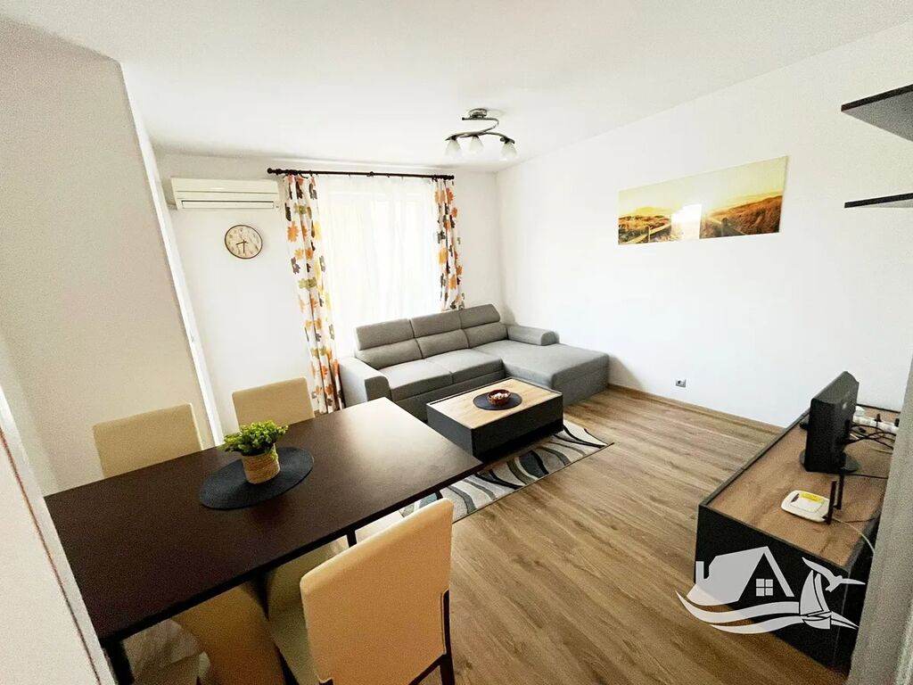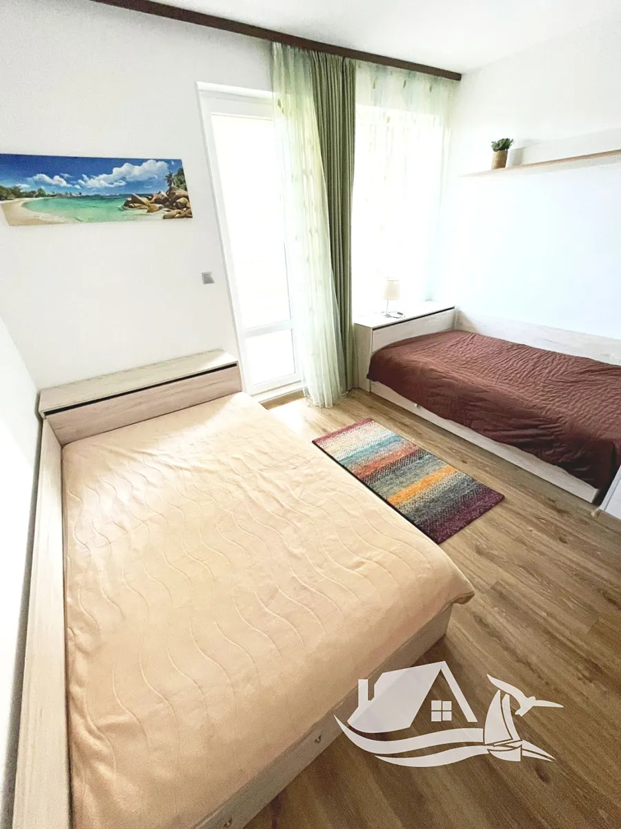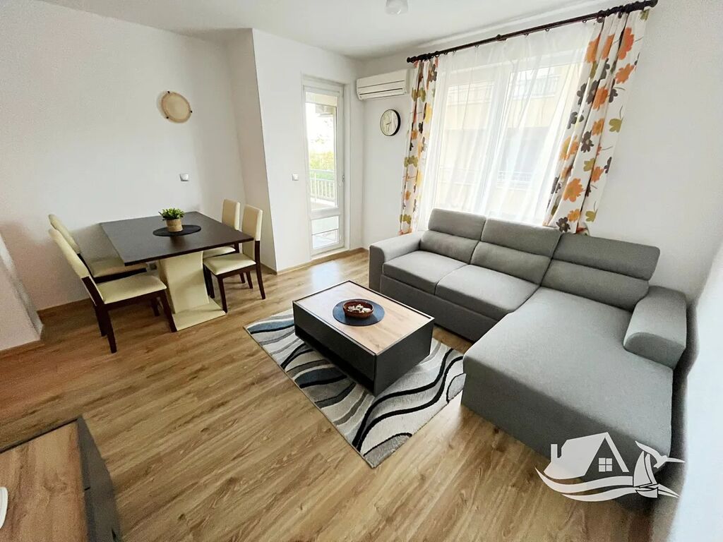 Nabízíme Vám ke koupi kompletně zařízený dvoupokojový apartmán na klidném místě mezi městy Obzor a Byala, pouhých 150 metrů od pláže. Byt se nachází ve druhém patře a nabízí nádherný výhled na Černé moře a celý komplex. Jeho celková plocha činí 64 m², z toho zastavěná plocha je 56 m². Dispozice zahrnuje prostorný obývací pokoj s kuchyňským koutem, samostatnou ložnici, moderní koupelnu a terasu s jedinečným výhledem na moře.