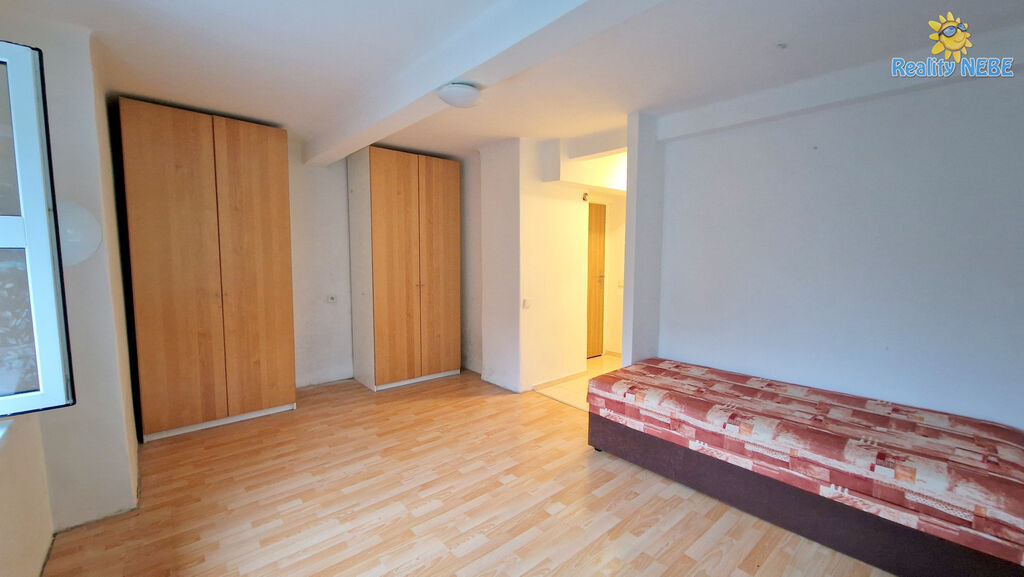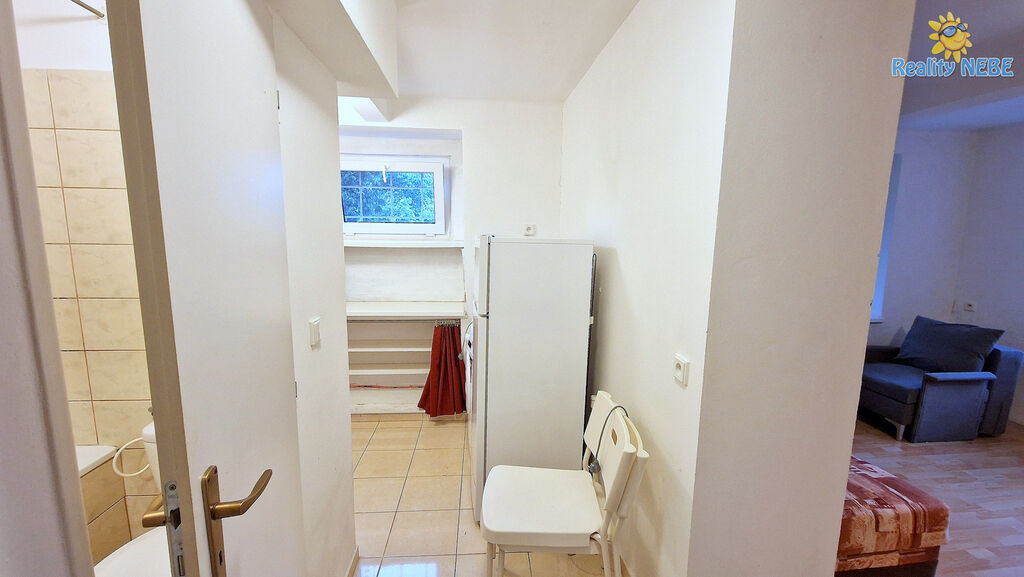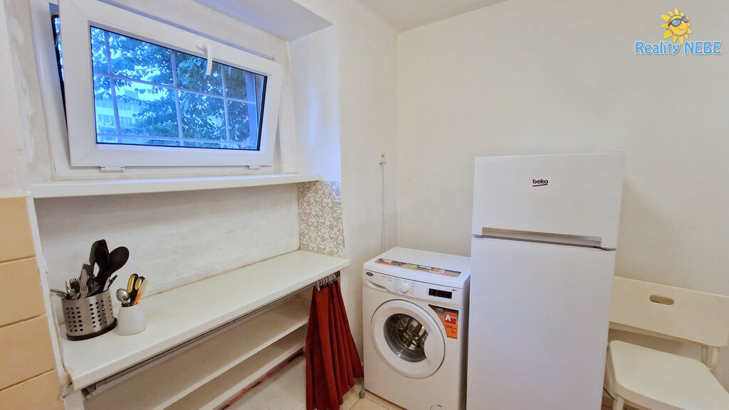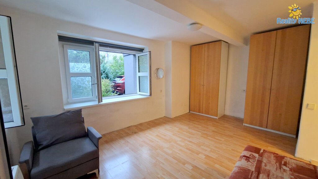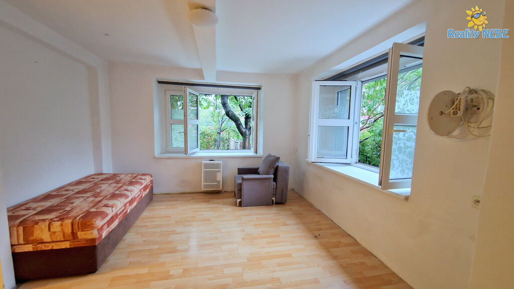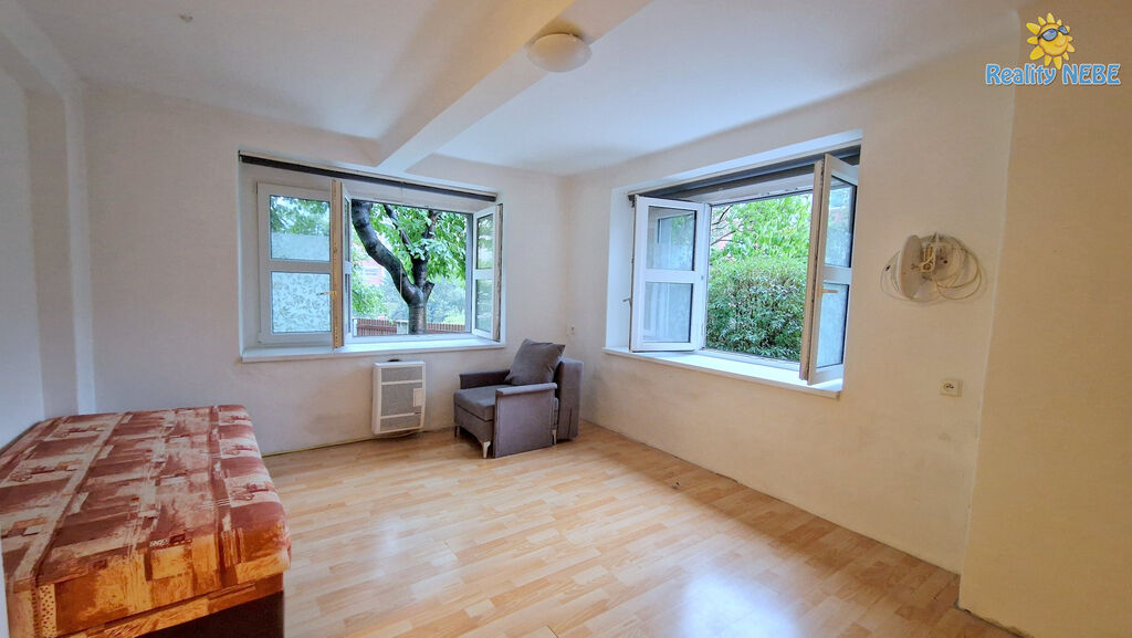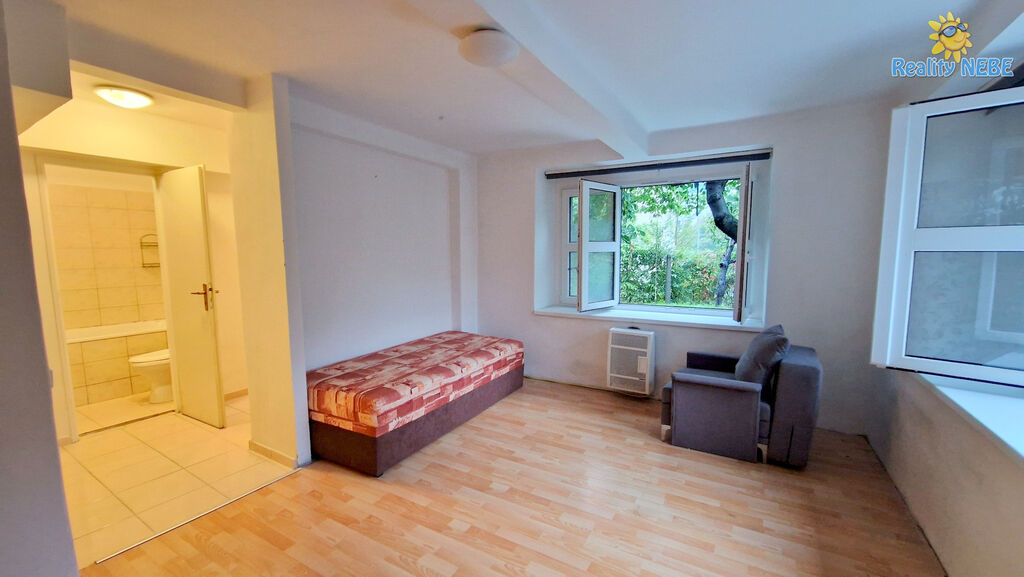 Jedná se o příjemné bydlení v zeleni. Byt je v přízemí činžovního domu, okna na jih do zahrady. Byt se pronajímá oproti fotkám částečně zařízený - součástí je postel, dvě šatní skříně, křesílko, pračka. Byt je v přízemí chladnější, ale jinak jde o příjemné bydlení s výhledem do zahrady, kterou je možné také užívat.