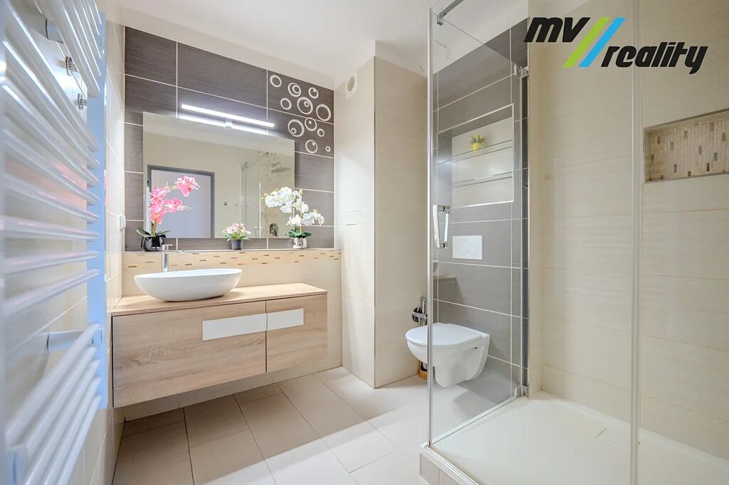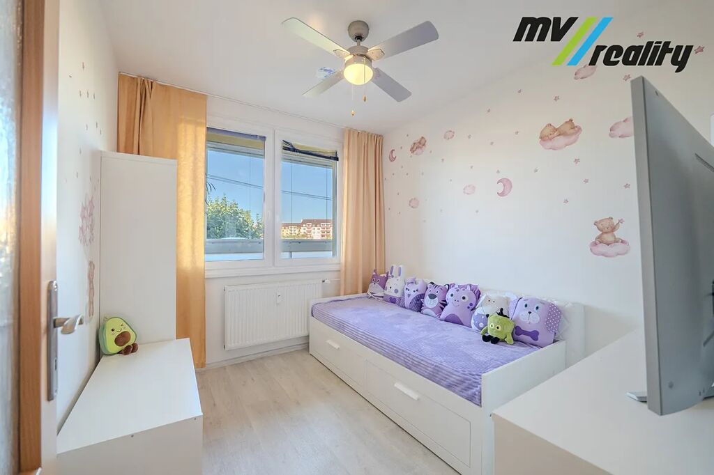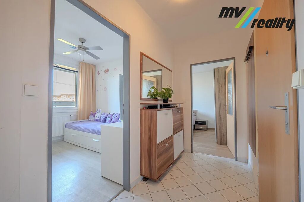 Vstupními bezpečnostními dveřmi se dostaneme do předsíně 7,1 m², ze které je vstup do všech místností bytu. Tím je v bytě zaručeno soukromí. Vpravo je ložnice 13,95 m² se vstupem na lodžii 5,3 m² a dětský pokoj 8,21m². Vlevo je komora 2,4 m² ve které je mimo polic i pračka. Koupelna 4,67 m² je vybavena prostorným sprchovým koutem, umyvadlem a WC s bidetovou sprškou. Dále se dostaneme do obývacího pokoje spojeného s kuchyňským koutem 28,1 m² a druhé zasklené lodžie 5,3 m². Všechna okna jsou orientované na západ. V kuchyni je plně vybavená kuchyňská linka se všemi spotřebiči. Celý byt prošel kompletní rekonstrukcí.
