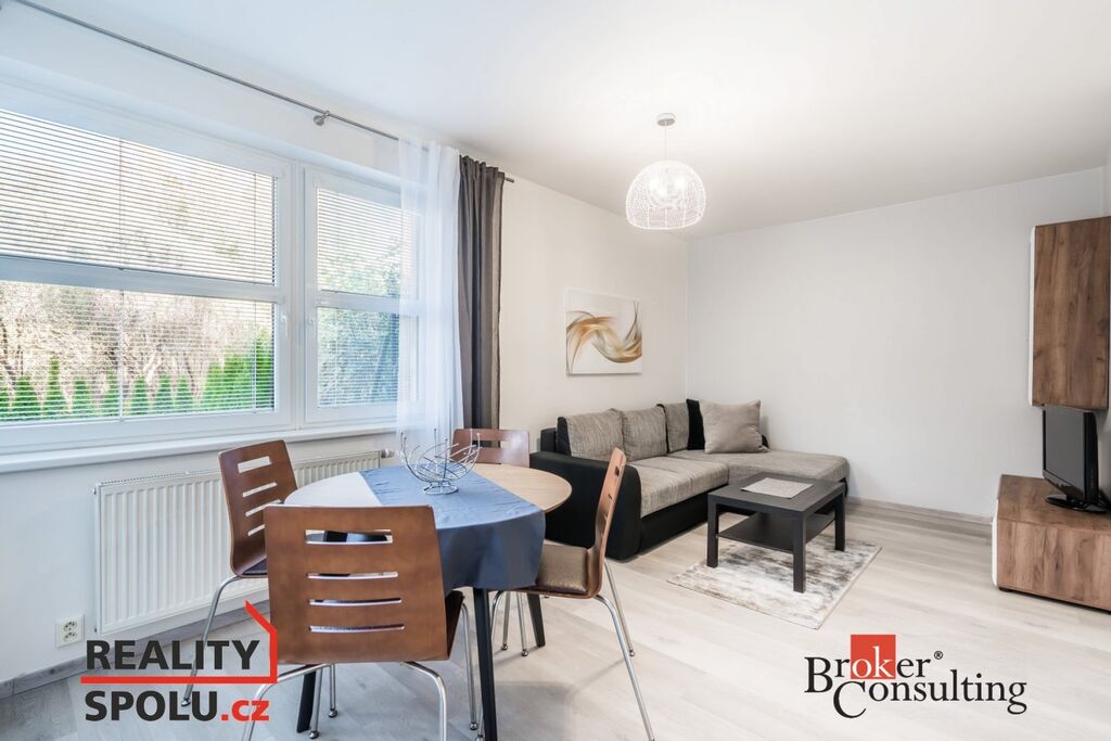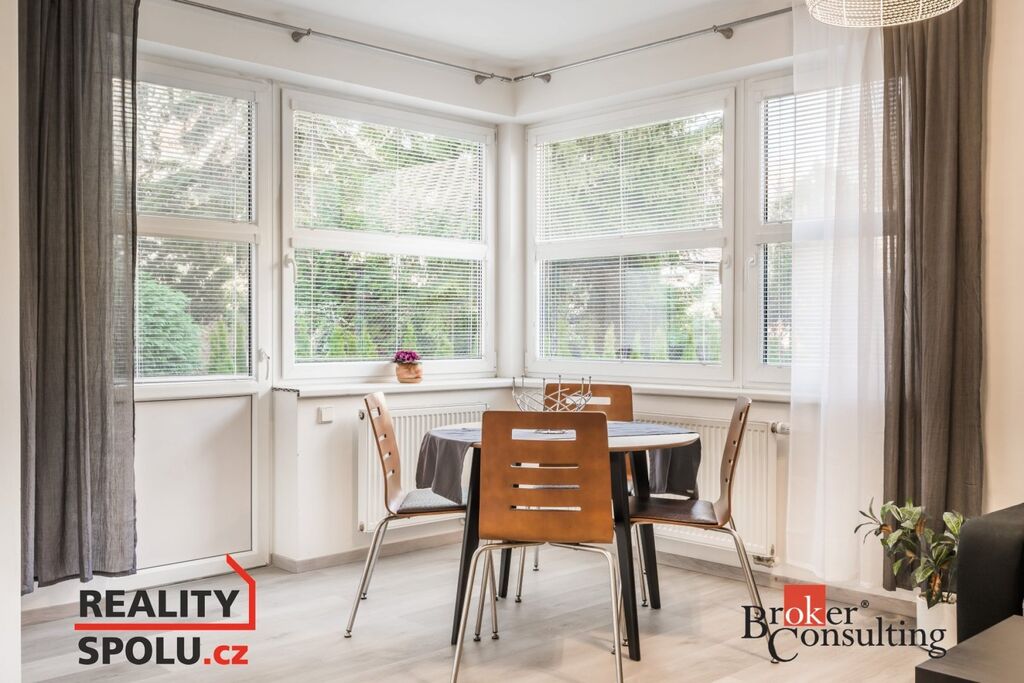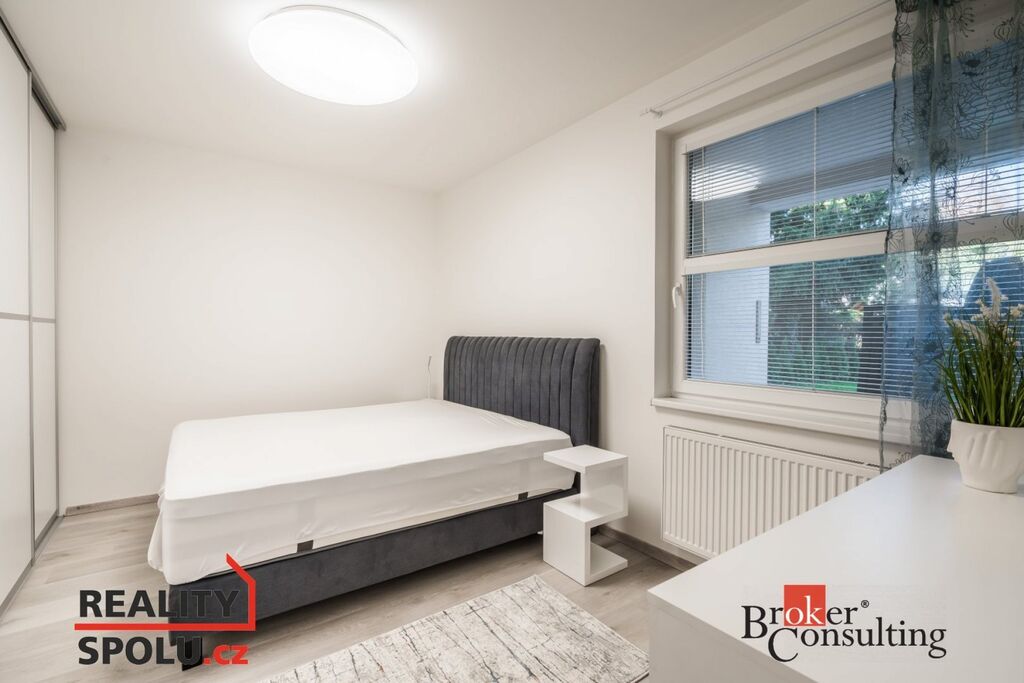 Jednotka prošla rekonstrukcí a pronajímá se kompletně vybavená: moderní kuchyňská linka včetně vestavěných spotřebičů, mikrovlnná trouba, jídelní stůl se židlemi, myčka, pohodlný gauč, konferenční stolek, obývací stěna, TV, postel, komody, botník a venkovní nábytek. V ložnici se nachází praktická šatna, k dispozici je také komora se vstupem ze zahrady.