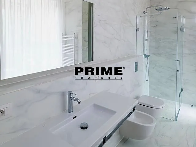 Dispozice bytu: prostorný obývací pokoj (86m2) s jídelní částí, vstupem na terasu (16m2) a s otevřenou, plně vybavenou italskou kuchyní se spotřebiči (indukční varná deska, elektrická trouba, lednice s mrazákem a myčka), hlavní ložnice (20m2) se šatnou a vlastní koupelnou (vana, sprchový kout, umyvadlo, toaleta, bidet), další 2 ložnice (19,5m2 a 16m2), druhá koupelna (vana, sprchový kout, umyvadlo, toaleta, bidet), prádelna a samostatné WC. Druhá terasa (13m2) je přístupná ze všech 3 ložnic a jedné koupelny. Dřevěné podlahy a velkoformátová dlažba. Rekuperace vzduchu, podlahové topení, internet, videotelefon, alarm. K dispozici je sklep.