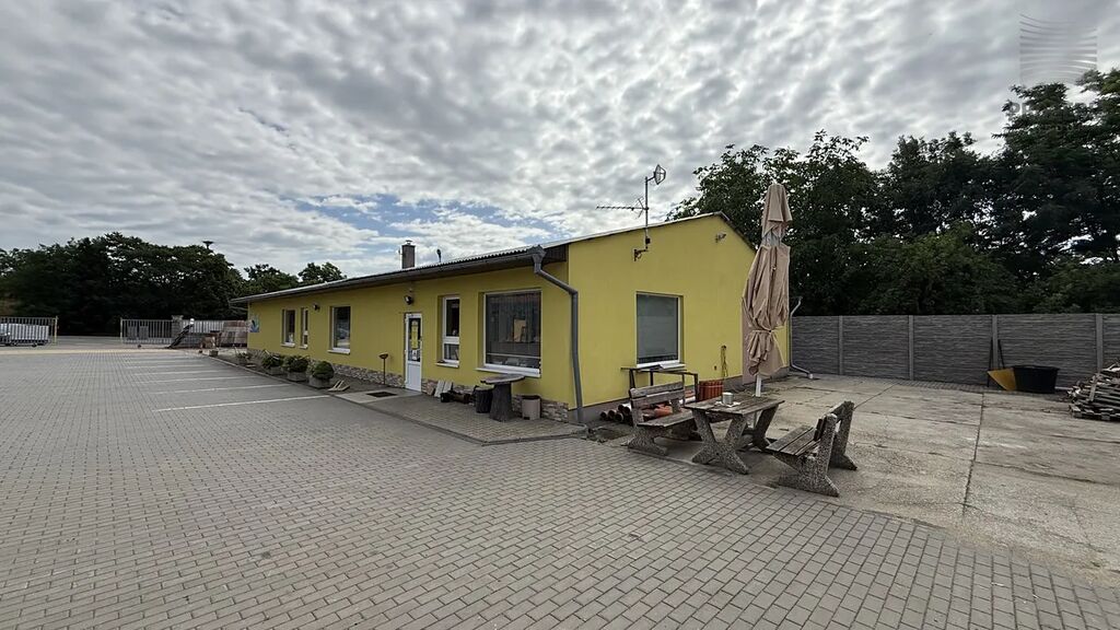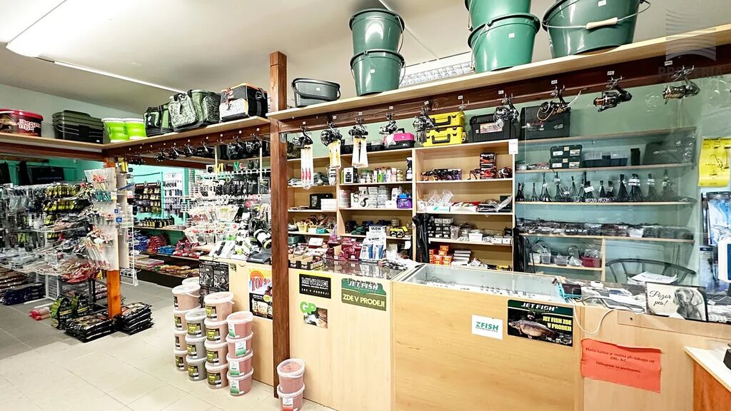 Součástí areálu je administrativní budova, kde je v současnosti umístěna prodejna stavebnin. Budova je rozdělena na dvě části – ve druhé funguje zavedený obchod s rybářskými potřebami s dlouhodobou klientelou. Na pozemku se dále nachází samostatná hala určená pro výrobu nebo skladování a několik parkovacích míst přímo před hlavní budovou.
