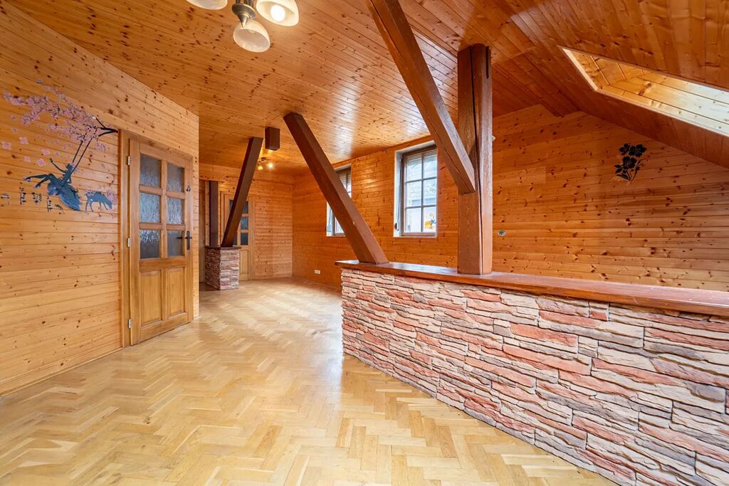 Ve 2. NP je byt s užitnou plochou 115 m2. Byt je aktuálně řešen jako 2+kk s velkou terasou, dalších 82 m2. Světlý, prostorný a s jasnou odděleností od podnikání v přízemí. Byt je celý obložen dřevem - díky tomu působí teple, útulně a má zajímavou atmosféru.
