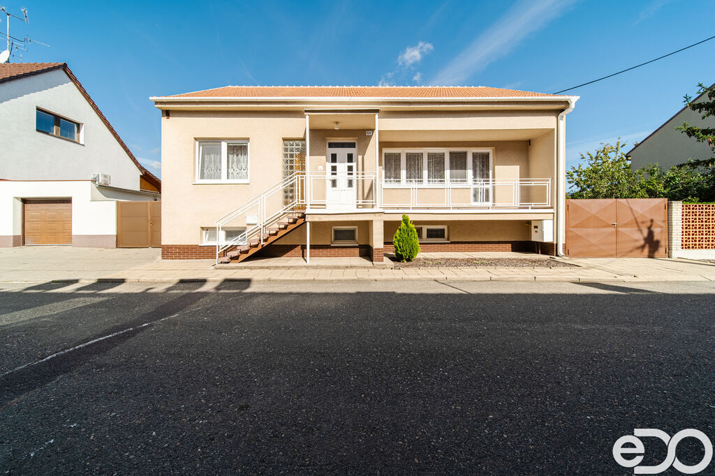 Hledáte dům, kde se snoubí prostor, funkčnost a možnost dalšího rozvoje? V Dolních Dunajovicích nabízím rodinný dům se zastavěnou plochou cca 130 m² a celkovou užitnou plochou 203 m², doplněný o vedlejší stavbu ve dvoře (dílna, garáž, sklad) o užitné ploše 42 m². Dům stojí v centru obce, ale mimo hlavní komunikace, což zajišťuje naprostý klid a soukromí s výhledem na Pálavu, přičemž vše potřebné (lékař, obchod, pošta, škola) je v docházkové vzdálenosti. Dispozice domu je 4+1+ zázemí, vše situováno v jednom podlaží. Dostatek úložného prostoru a případná možnost rozšíření o další obytné pokoje nabízí sklep přes celý půdorys domu. Pozemek o velikosti 519 m² je tak akorát velký, aby nabídl zázemí pro příjemné posezení, zeleninu, ovoce, ale přitom nevyžadoval složitou údržbu.