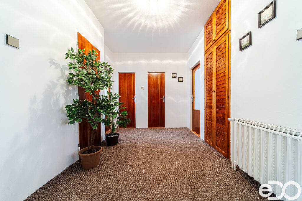 Suterén (97 m²): tři sklepy, komora, sušárna, prádelna, kotelna, kuchyň a obytná místnost – ideální pro provozní zázemí, skladování nebo hobby využití.