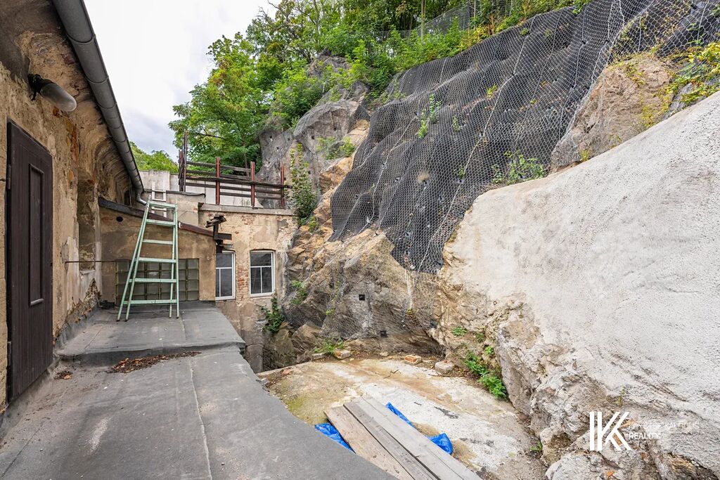 Za domem se rozprostírá klidný vnitroblok, do kterého přímo zasahuje majestátní skalní útvar. Ten vytváří nejen působivou kulisu, ale i jedinečnou atmosféru místa. Skála je součástí pozemku a v jedné její části se otevírá přístupný přírodní prostor, připomínající malou jeskyni. Ten může být využit například jako originální vinný sklípek v kombinaci s venkovním posezením.