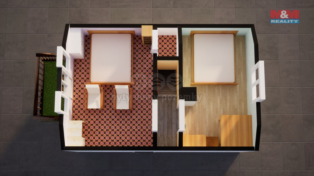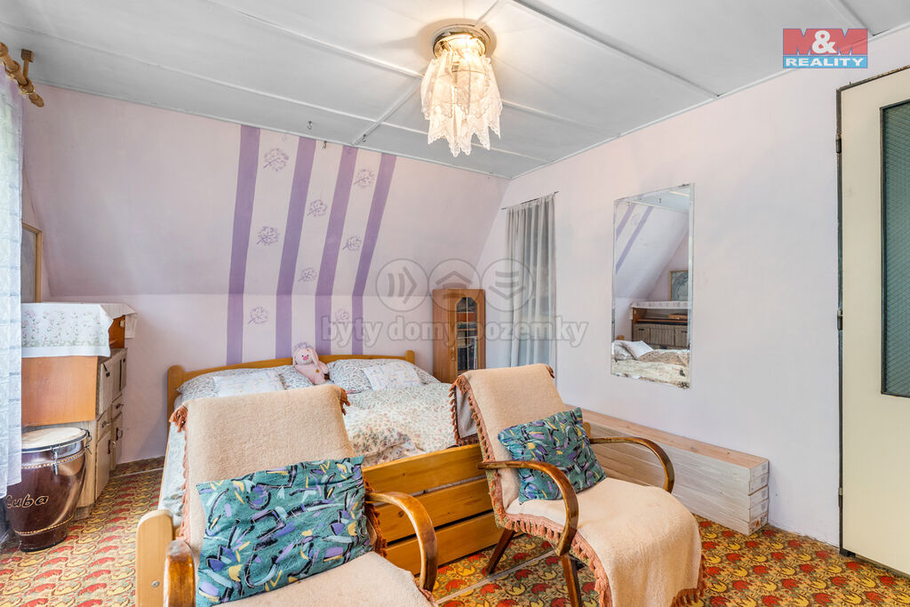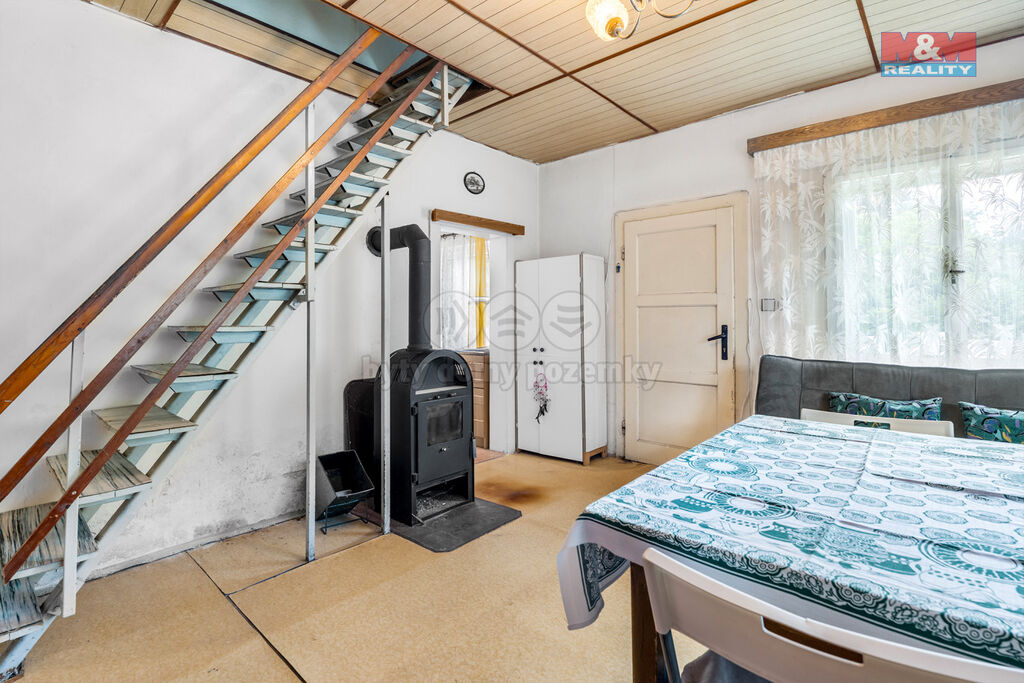 V malebné obci Čtveřín, části Doubí, nabízíme zděnou chalupu se zastavěnou plochou 36 m² a užitnou cca 50 m² na pozemku 432 m². Přízemí prošlo rekonstrukcí v roce 2012 (kuchyň, koupelna, obývací pokoj), v podkroví jsou dva světlé pokoje s balkonem a krásným výhledem do zeleně. Součástí je terasa, elektřina 230/400 V, voda z obecního vodovodu, topení krbovými kamny a žumpa. Pozemek je řešen terasovitě, přímo u chaty je prostor pro venkovní posezení i vybudování vlastního parkování, takže auto zaparkujete pohodlně na vlastním. Příjezd vede po obecní slepé cestě, což zaručuje naprostý klid a soukromí bez provozu. Pozemek je v ploše BV – bydlení v rodinných domech. Díky stávající stavbě a historickému vymezení je možné rozšíření nebo výstavba nové stavby i pod obvyklou hranicí 800 m², což celý proces povolování zjednodušuje (výňatek z územního plánu je mezi fotografiemi). Klidná lokalita s výbornou dostupností R35, vlakem i busem, v blízkosti Český ráj, koupaliště a zámek Sychrov.
