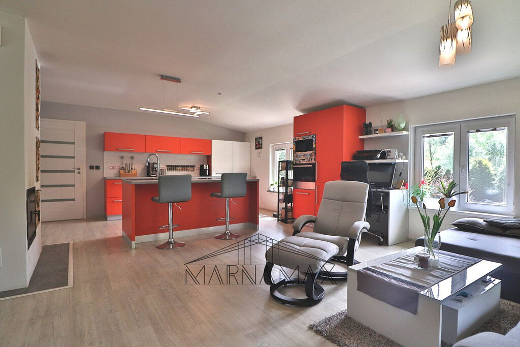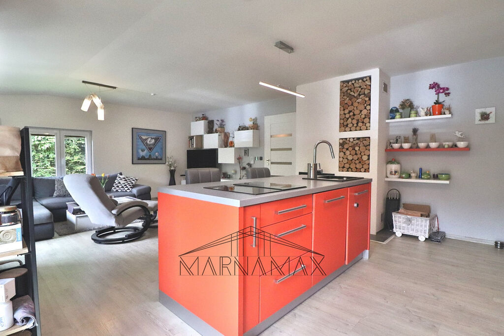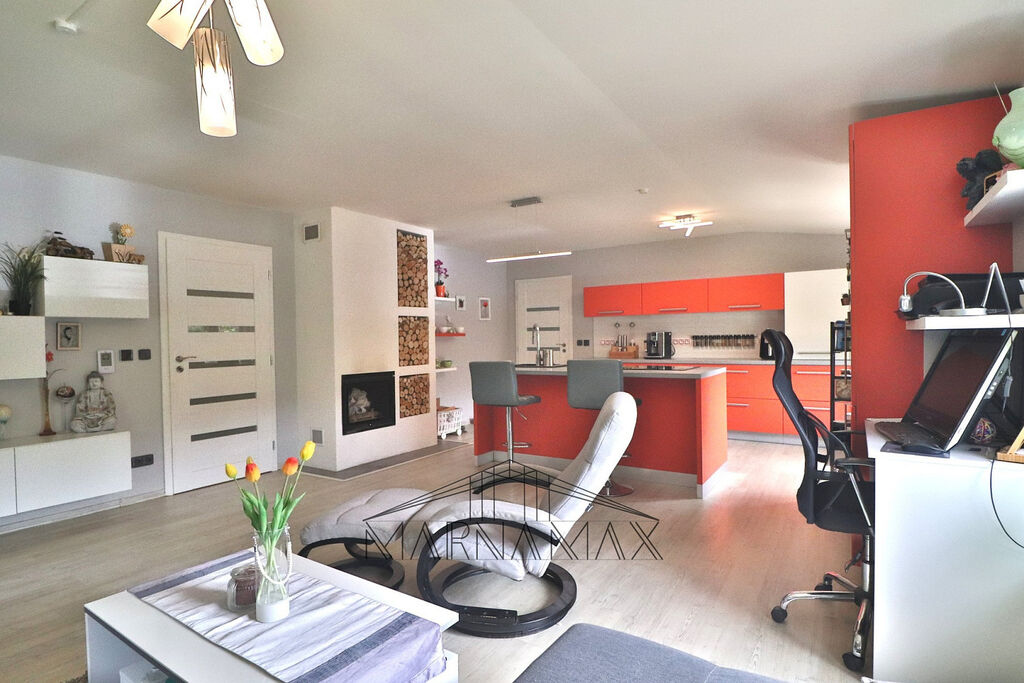 Hlavní část domu tvoří moderně zrekonstruovaná bytová jednotka 2+kk. Otevřený koncept propojuje plně vybavenou kuchyň s obývacím pokojem, útulná ložnice zajišťuje maximální pohodlí a prostorná koupelna nabízí vanu, sprchový kout, WC a bidet.