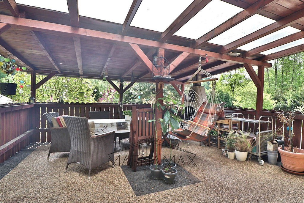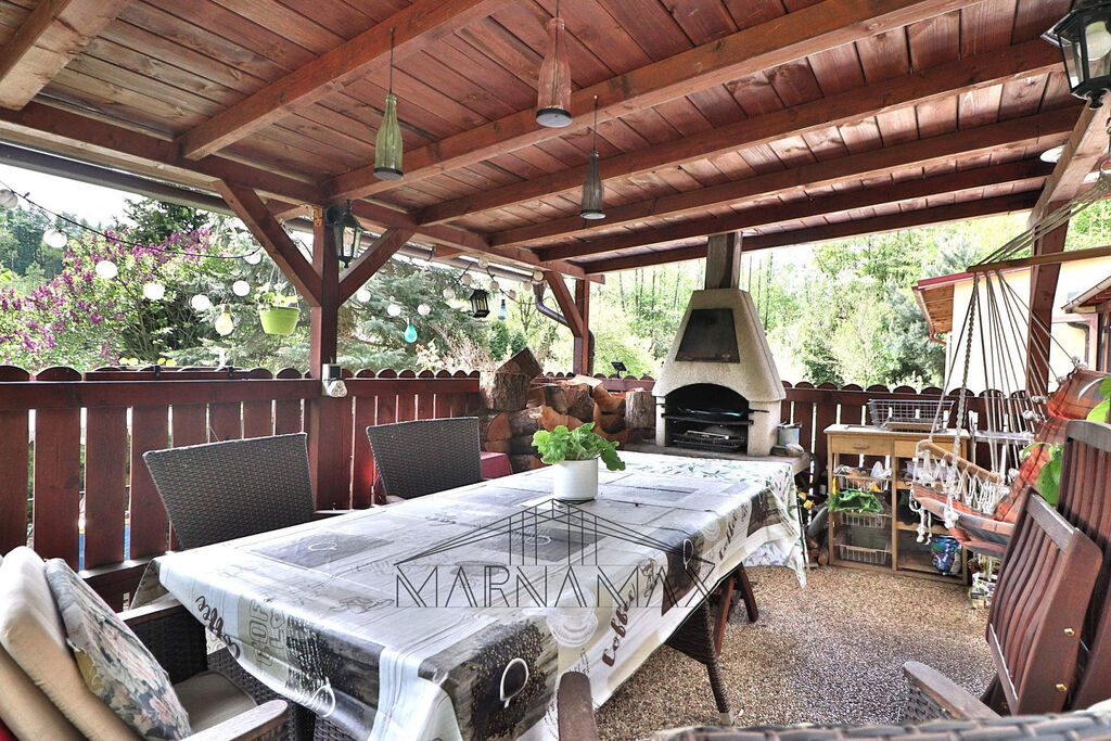 Součástí domu je prostorná terasa s pergolou ideální pro relaxaci a venkovní posezení.