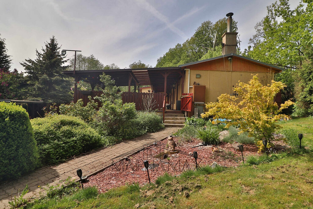 Na udržované zahradě naleznete ovocné stromy a keře, pergolu pro parkování auta a dostatek prostoru pro volnočasové aktivity.