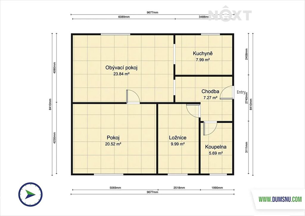 Vstupními dveřmi vejdete do chodby, ve které se nachází velká vestavěná skříň a vlastní plynový kotel. Z chodby se dostanete do krásné světlé koupelny s umyvadlem, toaletou a sprchovým koutem a také do pěkné ložnice. Dalším vstupem z chodby se dostanete do prostorného obývacího pokoje, kde najdete šikovně oddělenou kuchyňskou linku. Dále se odtud dostanete do dalšího, světlého, neprůchozího pokoje.