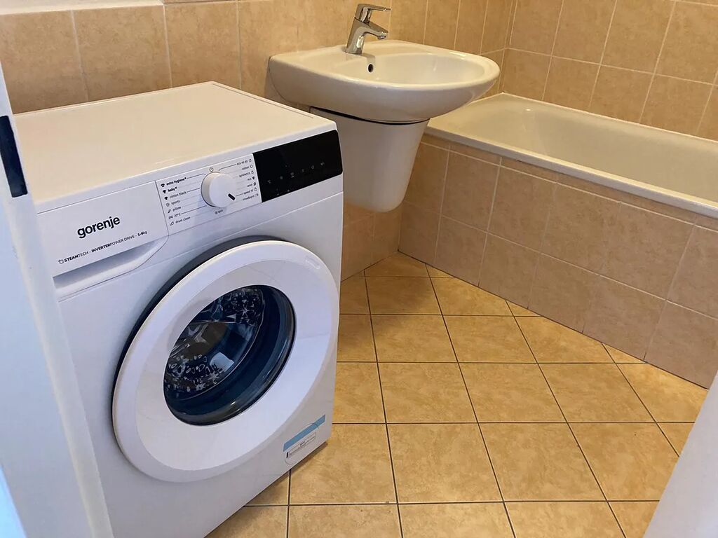 V koupelně je vana.