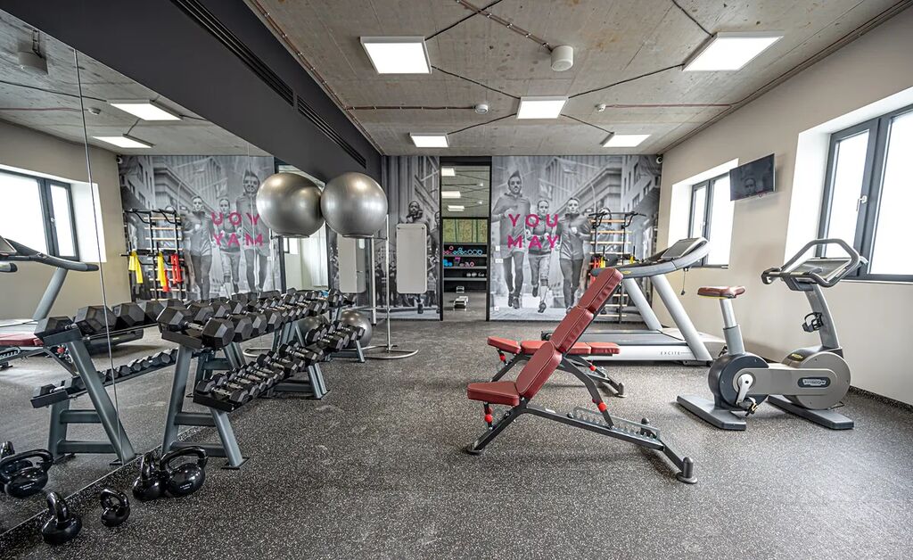 V budově se nachází kolárna, šatny se sprchami, prostor pro aerobní cvičení a společná terasa s krásným výhledem. Součástí terasy, kde budete moci relaxovat, je i vybavená kuchyňka s možností venkovního grilování.