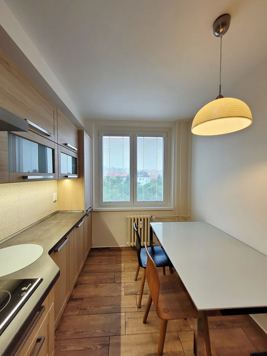 Nabízíme k pronájmu prostorný a plně zařízený byt 3+1 o velikosti 72 m² s příjemným 5 m² zaskleným balkonem v klidné lokalitě BrnoBohunice na ulici Souhrady, umístěný ve třetím patře panelového domu.