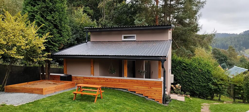 Dovoluji si Vám nabídnout k prodeji novou dřevostavbu patrové chaty s terasou a oploceným pozemkem o výměře 519 m2 v podhorské oblasti města Žacléř. Vše v osobním vlastnictví.
