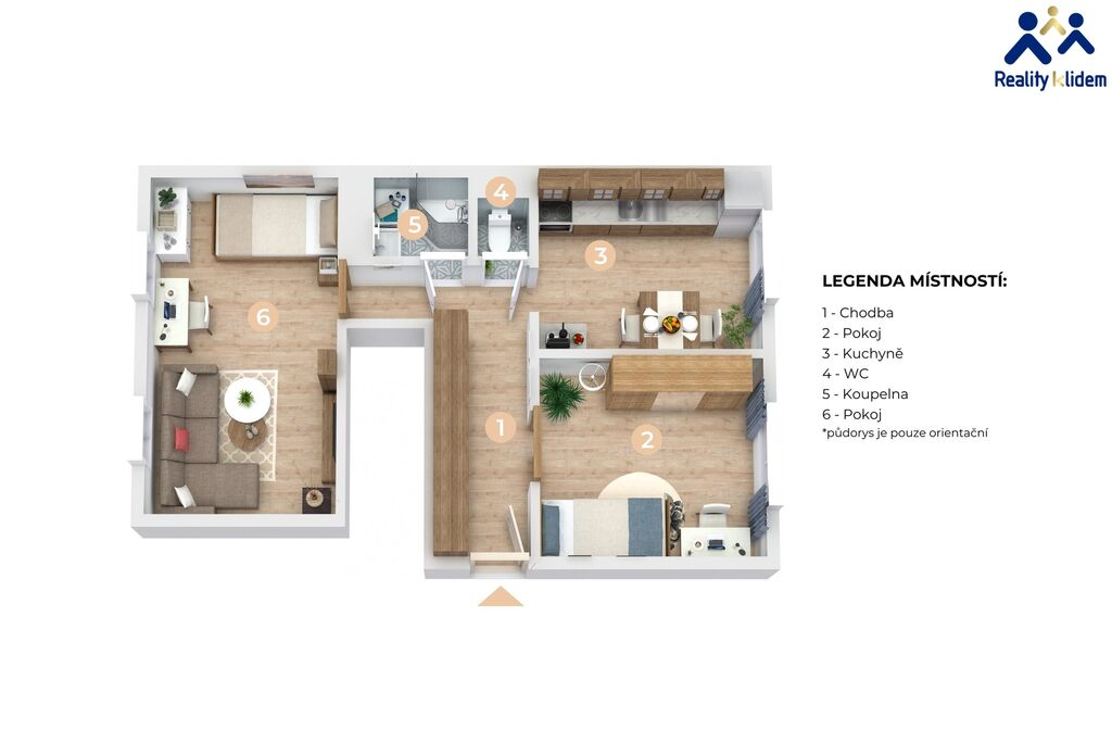 Nachází se ve třetím patře cihlového domu a jeho část je v půdním prostoru. Kromě obývacího pokoje, ložnice a kuchyně nabízí i sklep pro uložení vašich věcí. Další alternativou uskladnění je sousedící půda budovy.