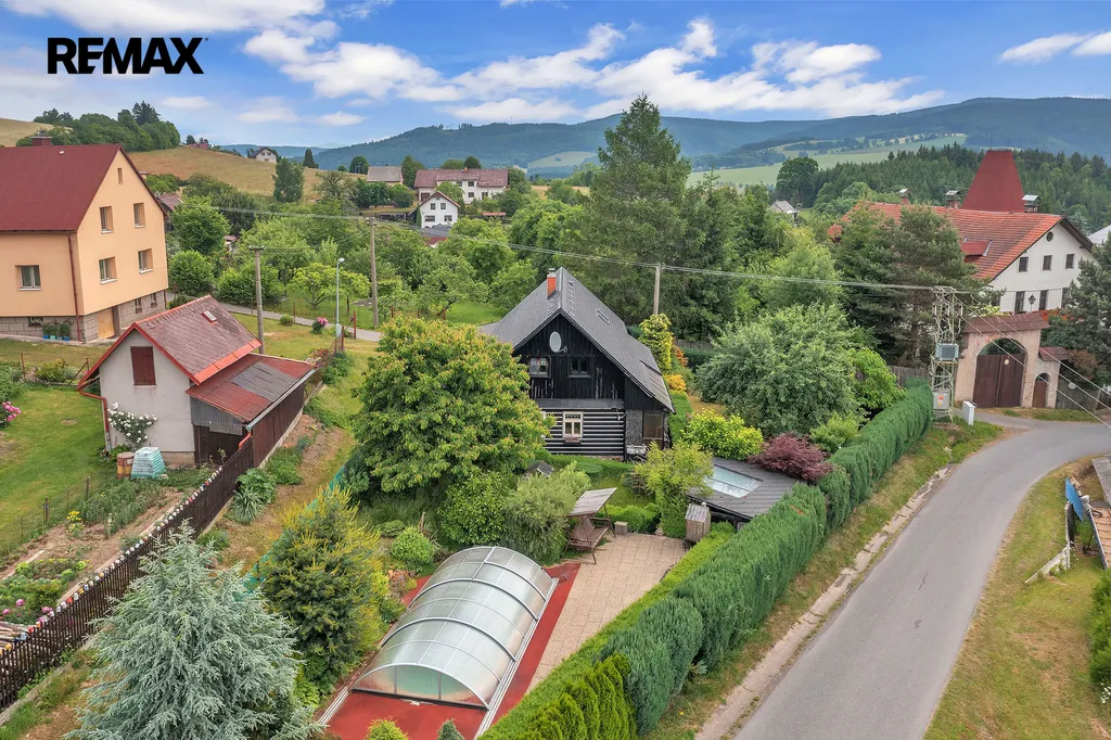 Stylová chalupa s bazénem a zahradou, k trvalému bydlení i rekreaci, Sobkovice – Orlické hory, pozemek 805 m2.