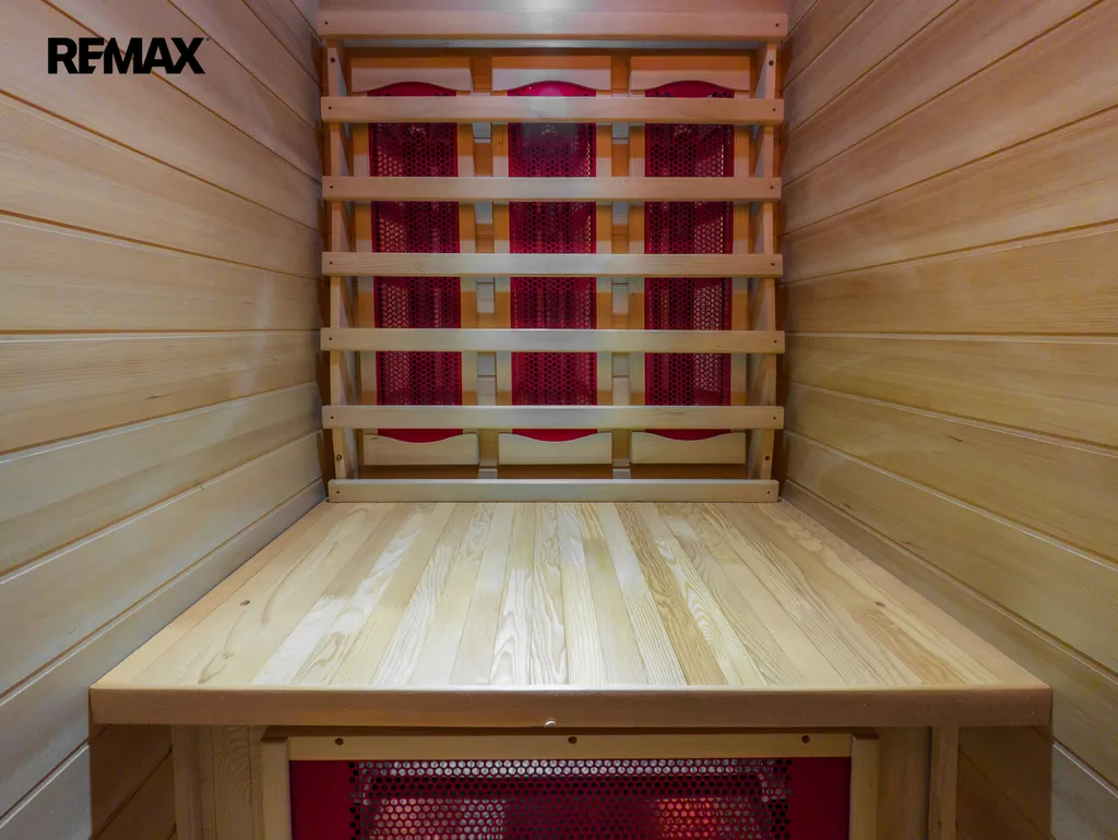 V patře chalupy najdete čtyři pokoje, šatnu a WC. Je zde i sauna značky Hanscraft, která vám umožní dopřát si zasloužený odpočinek po dlouhém dni stráveném v práci nebo přírodě.