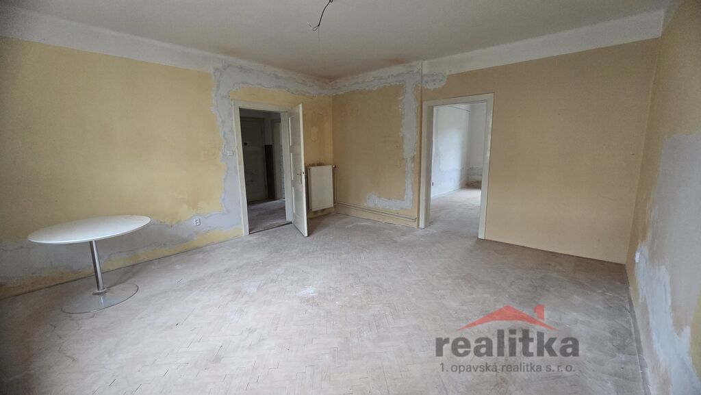 Nabízíme prodej bytu k rekonstrukci 3+1, 75m2 s balkónem a společnou zahradou v Opavě v klidné lokalitě na ul. Bezručovo náměstí. Byt se nachází v 1. patře cihlového domu. Celý dům je v podílovém spoluvlastnictví. V bytě je nový kondenzační, plynový kotel na vytápění a ohřev vody, nová topná tělesa a nová elektřina, v celém bytě jsou plastová okna. Byt je v současné době - kuchyň se vstupem na balkón a do malého pokojíčku. V předsíni je vstup na Wc, velké koupelny, komory, 1. pokoje a ten je průchozí s 2. pokojem. Dispozice bytu lze krásně zcela přebudovat na velký 3+kk s velkou šatnou. Byt je situovaný na JV a JZ stranu. Doporučuji prohlídku těm, kteří chtějí celkovou rekonstrukci dle vlastních představ. K bytu náleží velký sklep, půdní prostor a podíl na udržované zahradě. Zájemci o prohlídku dle domluvy s paní Gratzovou.