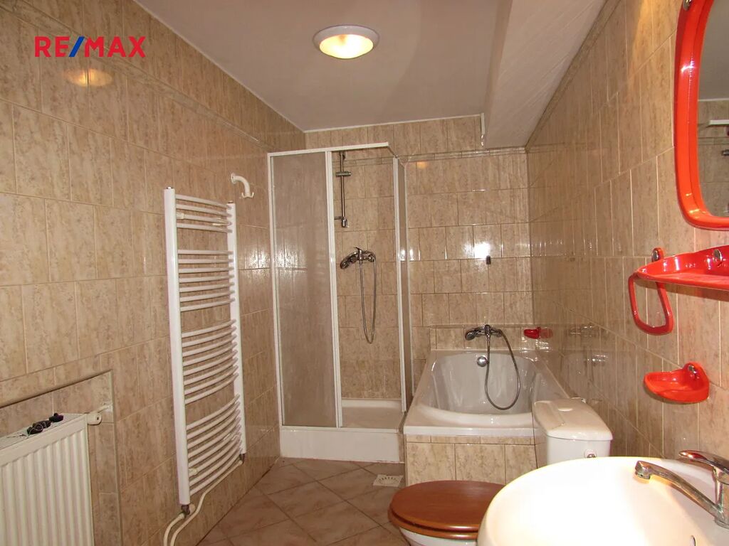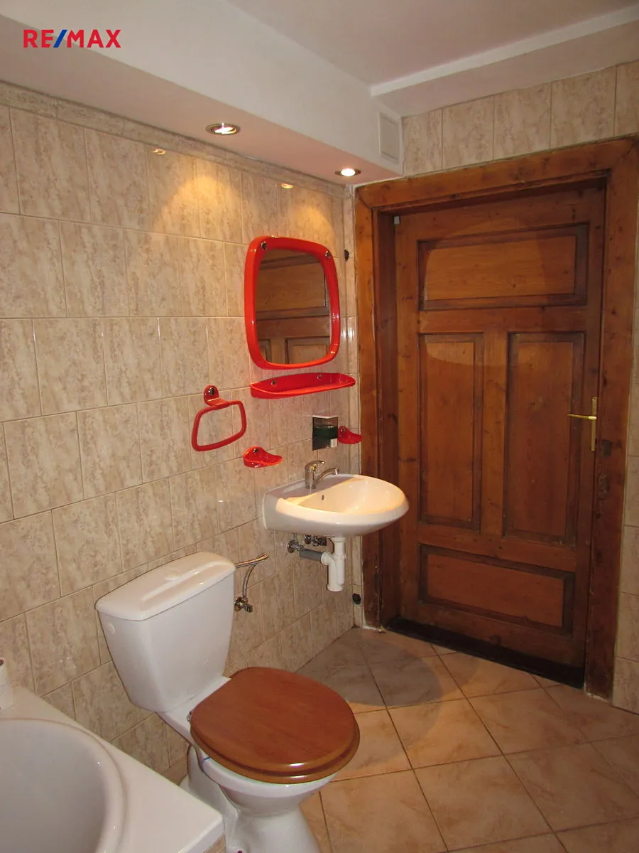 Sociální zařízení k bytu se nachází na společné chodbě v domě, ale patří pouze k bytu (vana, sprchový kout, umyvadlo a WC) + další samostatné WC s umyvadlem. K bytu patří sklípek v suterénu. Celková podlahová plocha bytu se sklepem činí 75 m2.