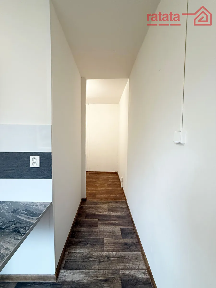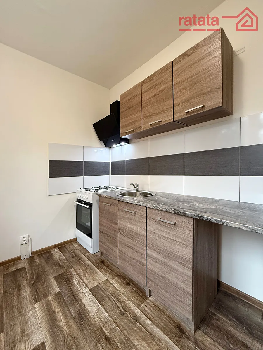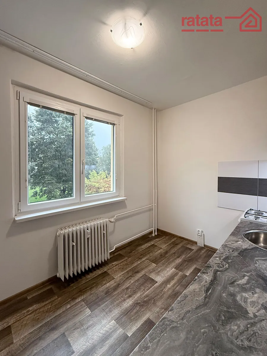 Je to čistý a slunný byt. Je zde kuchyňská linka, plynový sporák, vana s umyvadlem a WC. Na podlahách je položeno lino. Byt je volný k nastěhování IHNED.